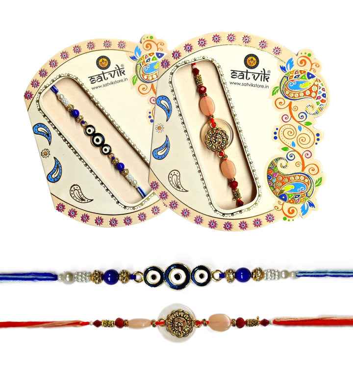 Satvik Evil Eye And Golden Pastel Stone Rakhi – Satvikworld.com
