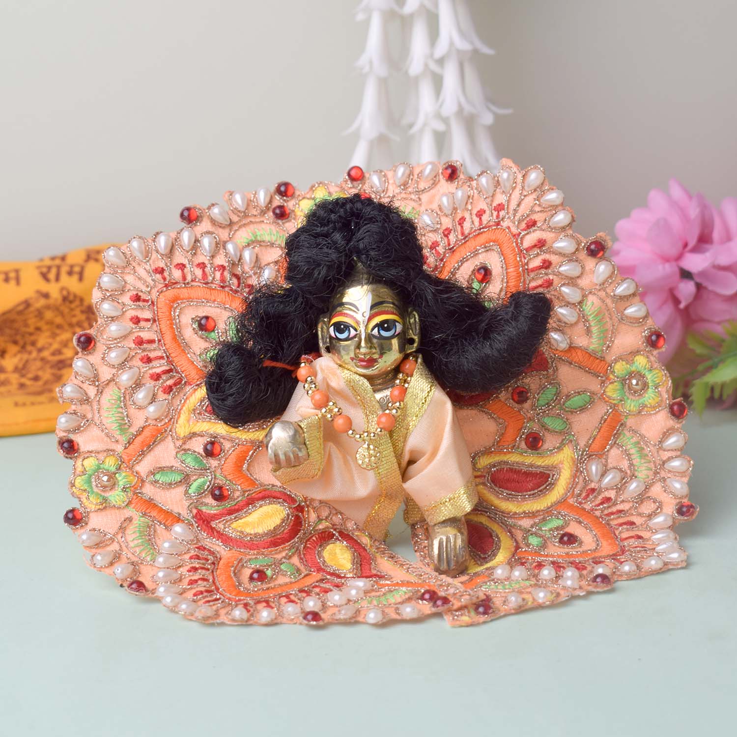 Drape your divine Laddu Gopal in vibrant elegance with this stunning orange dress set, beautifully embroidered and adorned with intricate stonework. The rich colour and meticulous detailing reflect the warmth and devotion of festive celebrations, making your deity the radiant centre of your pooja space. Perfect for Janmashtami, daily darshan, or special occasions, this exquisite dress set combines tradition and artistry to elevate Lord Krishna’s divine aura. Let every prayer be wrapped in beauty, blessings, and devotion with this graceful attire for your Laddu Gopal.