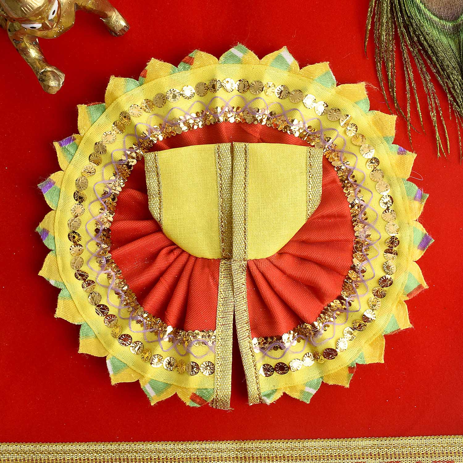 Buy Online | Vibrant Red-Yellow Laddu Gopal Dress | satvikworld.com – Satvikworld.com