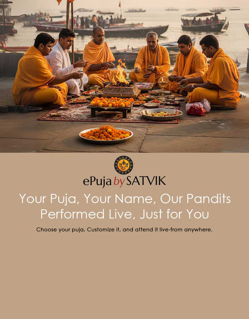Experience authentic Hindu rituals with Satvik’s trusted online puja services. Whether you're looking to book a puja online, schedule a Hindu pooja online, or explore the best online puja website, Satvik offers a seamless platform to fulfill all your spiritual needs. Our platform for Online Pooja ePujabySATVIK.com—is your one-stop destination for online pooja, puja services online, and Vedic rituals performed by experienced priests. Easily book online pujaor book online poojafrom anywhere, anytime. Discover why Satvik is India’s most reliable name for online pujaand online pooja website. With Satvik, divine blessings are just a click away