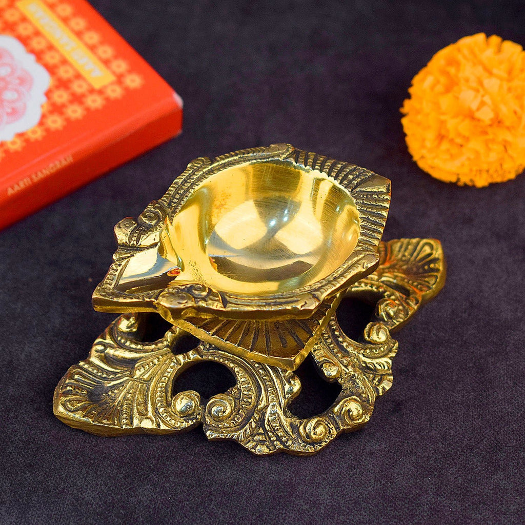 Elevate your spiritual practice with our Panch Aarti Diya, designed to hold multiple lamps for simultaneous aarti offerings. Crafted with utmost care, these functional diya lamps also serve as stunning decorative pieces for your home altar or temple, allowing you to immerse yourself in divine radiance during panch aarti with grace and devotion.