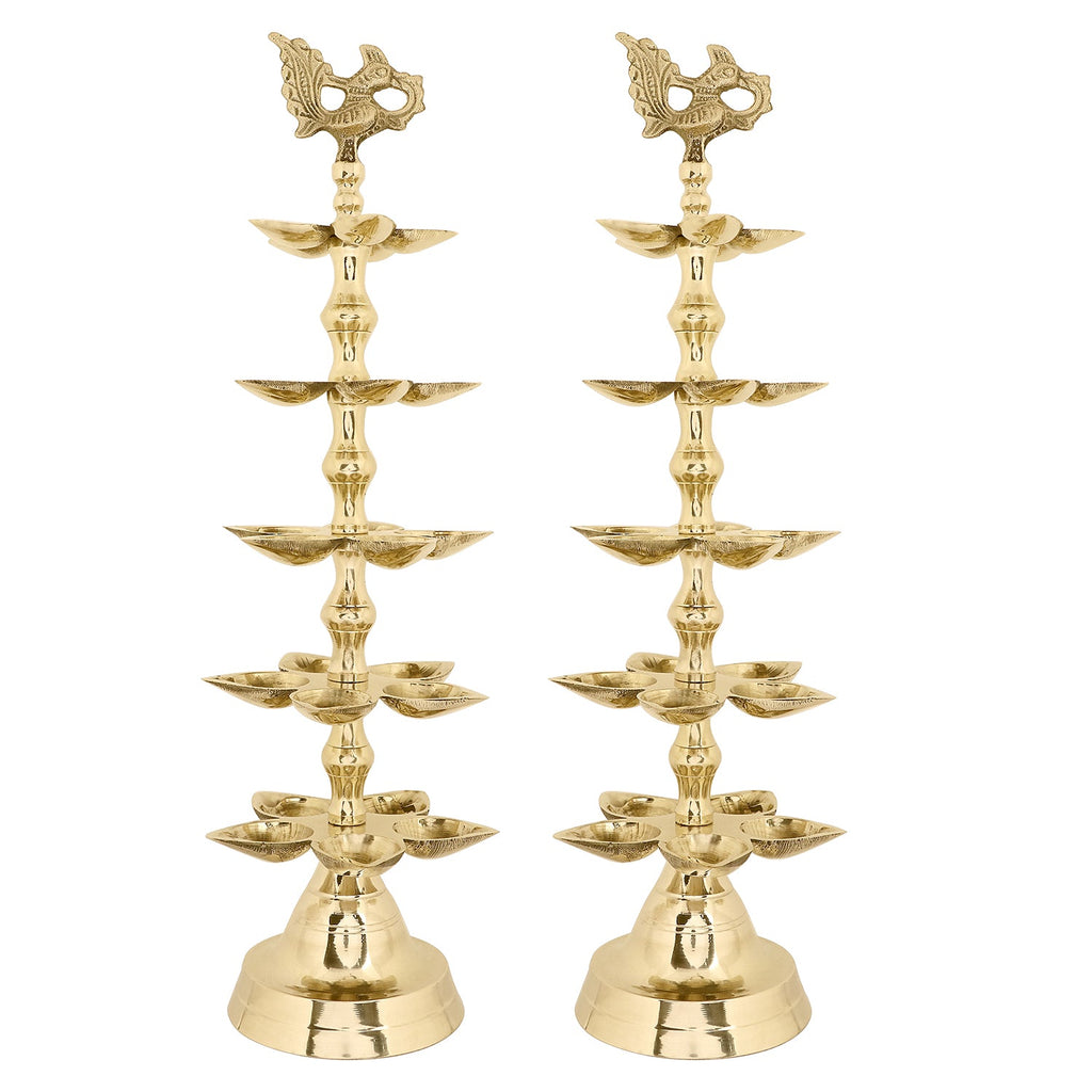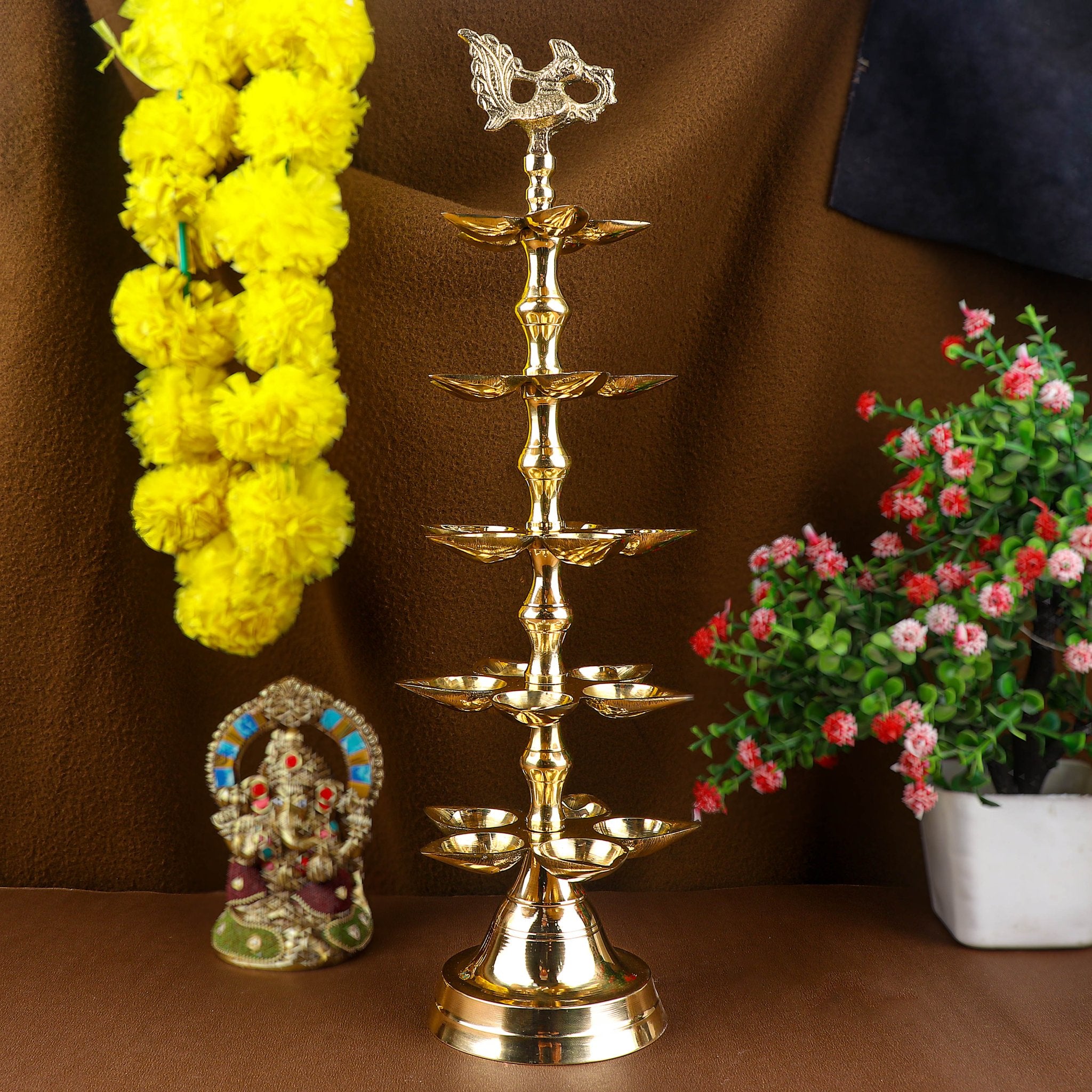 Brass 5 Step Panchmukhi Peacock Kerala Diya – Satvikworld.com