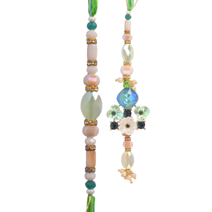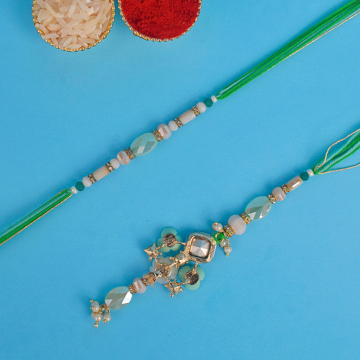 • Package: 1 Men Rakhi, 1 Women Lumba Rakhi, Roli Chawal Pack, Ram & Sita Theme Stickers