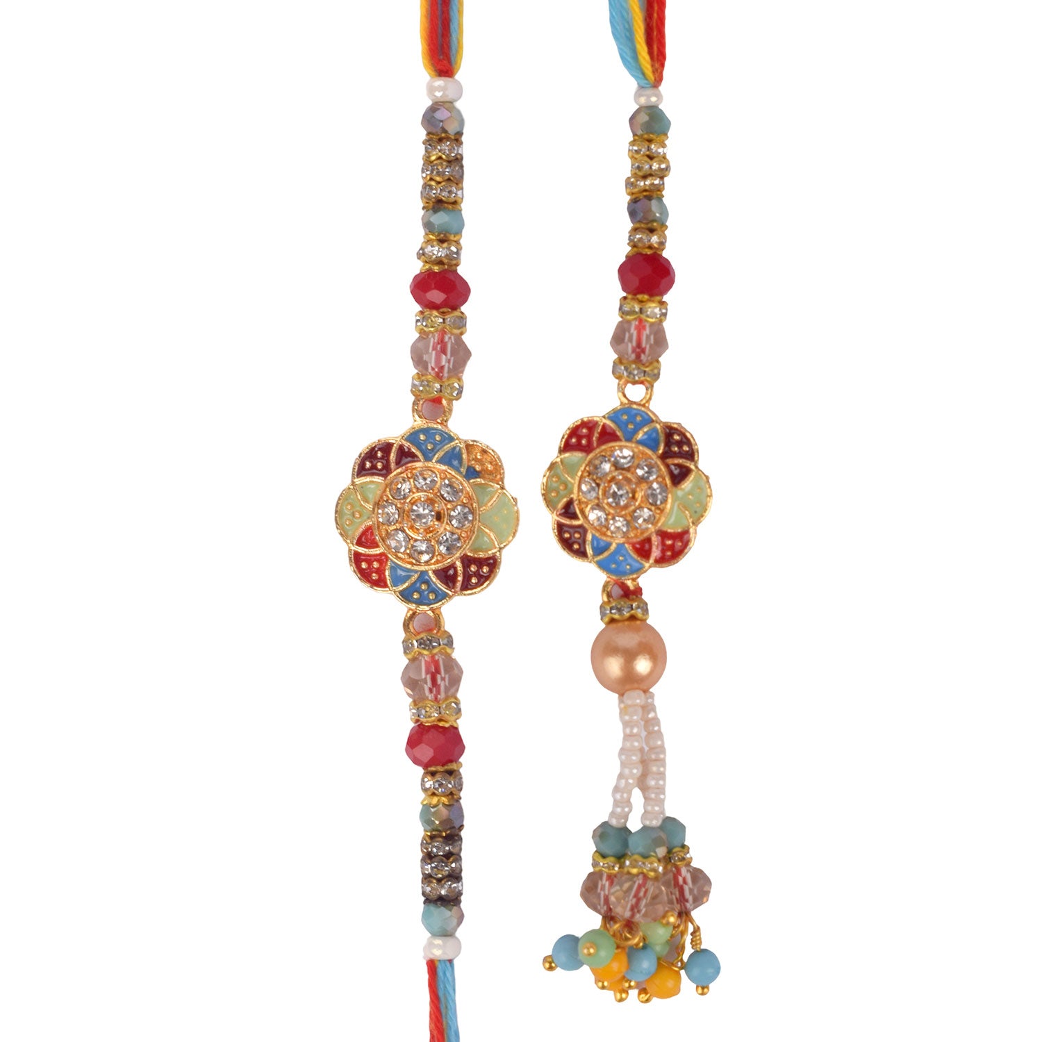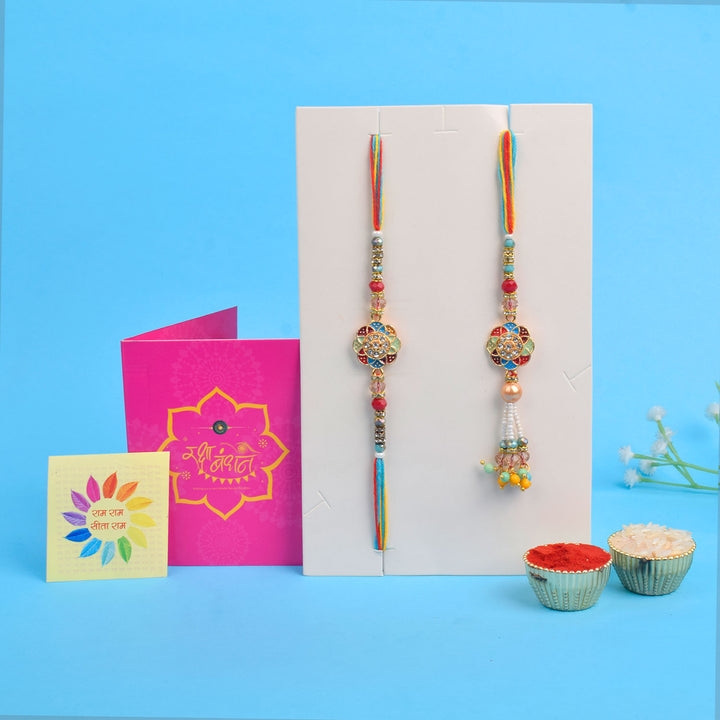 • Package: 1 Men Rakhi, 1 Women Lumba Rakhi, Roli Chawal Pack, Ram & Sita Theme Stickers