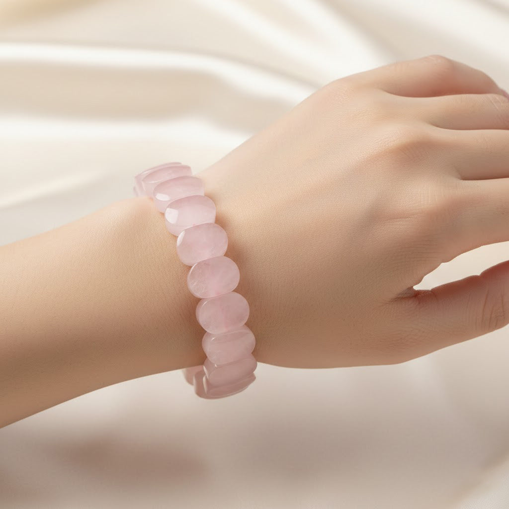 Rose Quartz Flat-Beaded Bracelet Stylish Spiritual Wear