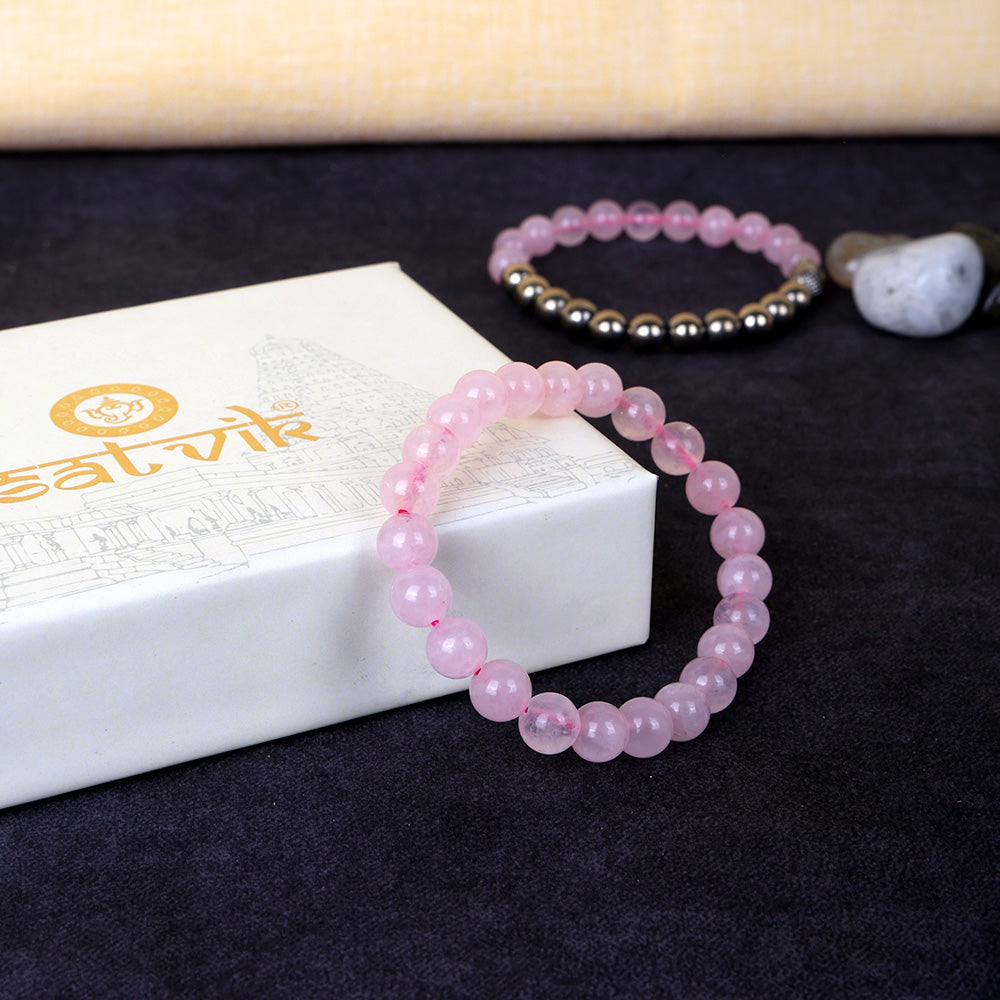 Buy Rose Quartz Round Bead Healing Stone Bracelet | Satvikworld.com