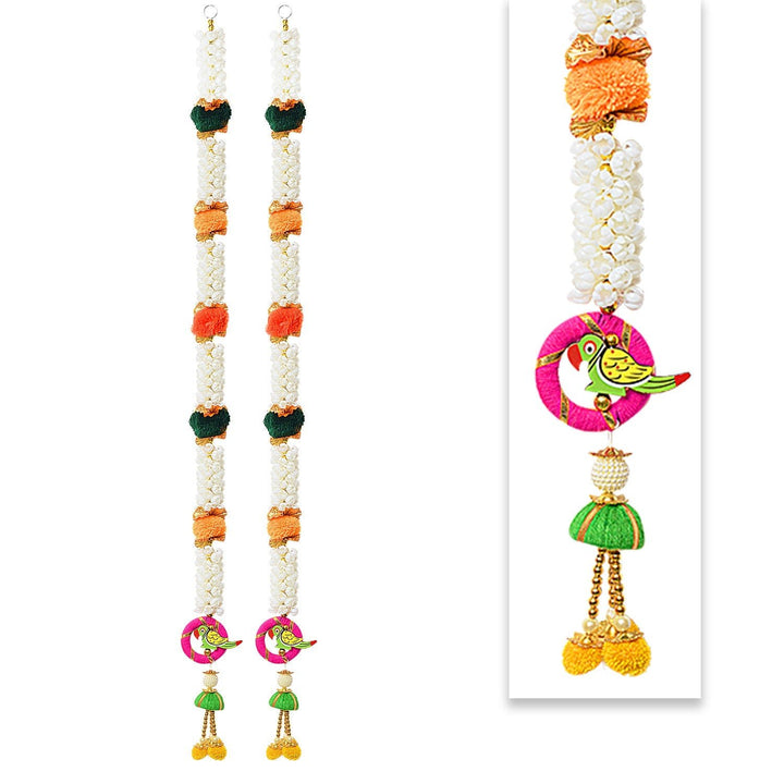 Give your home a traditional and floral touch with these Artificial Jasmine Wall Hanging Latkans (Color-Assorted). Designed with soft jasmine-style artificial flowers, playful pom-poms, and elegant tassels, this pair brings color, culture, and positivity to your walls or pooja space.