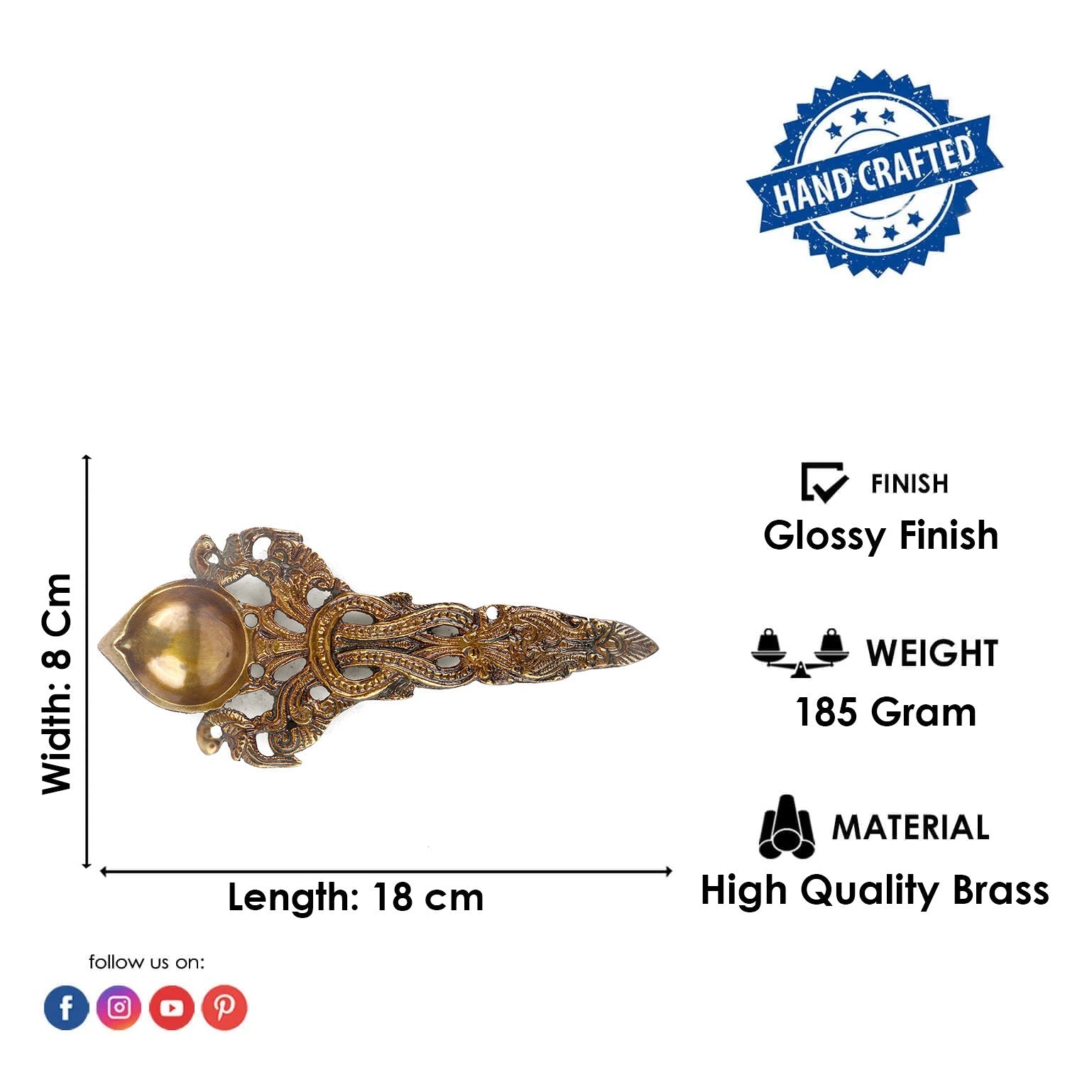 • Material:  Designer Brass Pooja Aarti Spoon Small is made from High Quality and Virgin Brass Material.