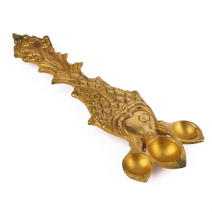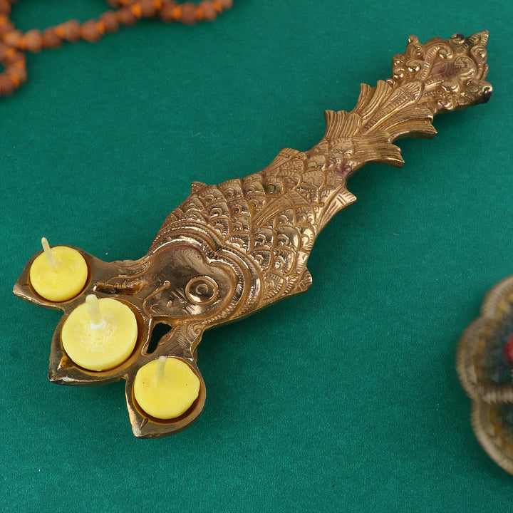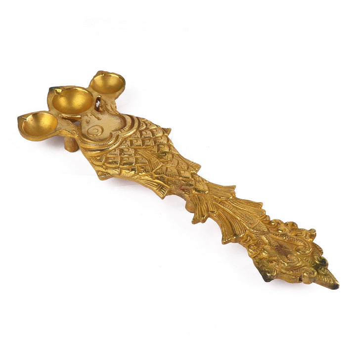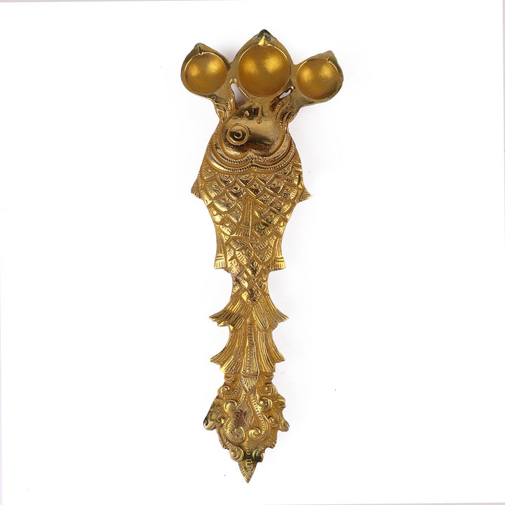 • Item Name: Designer Brass Fish Shape Trimukh Kapoor Aarti Spoon