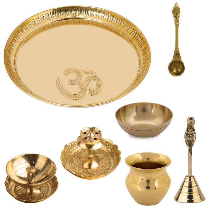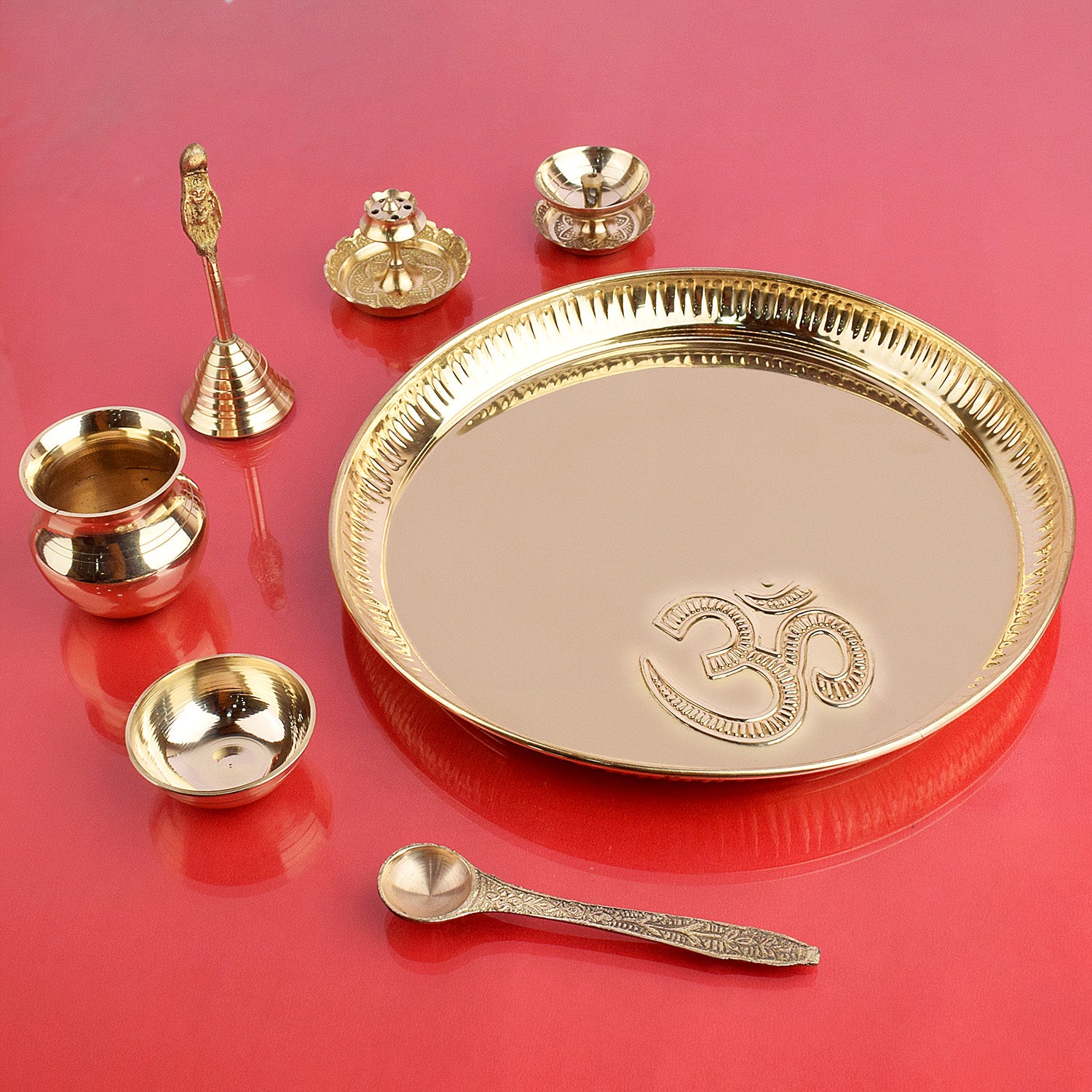 7 Piece Brass OM Pooja Thali Set (9 Inch) Design 10