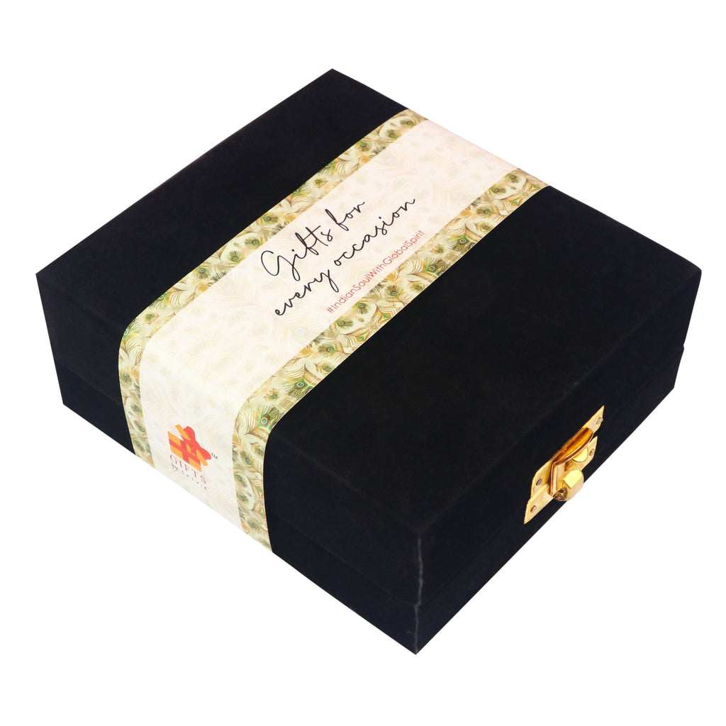 • Package Contains: 1 Pc Designer Embossed Bowl with 1 Spoon. This Set comes With Unique Royal Velvet Box Premium Gift Packing Set.