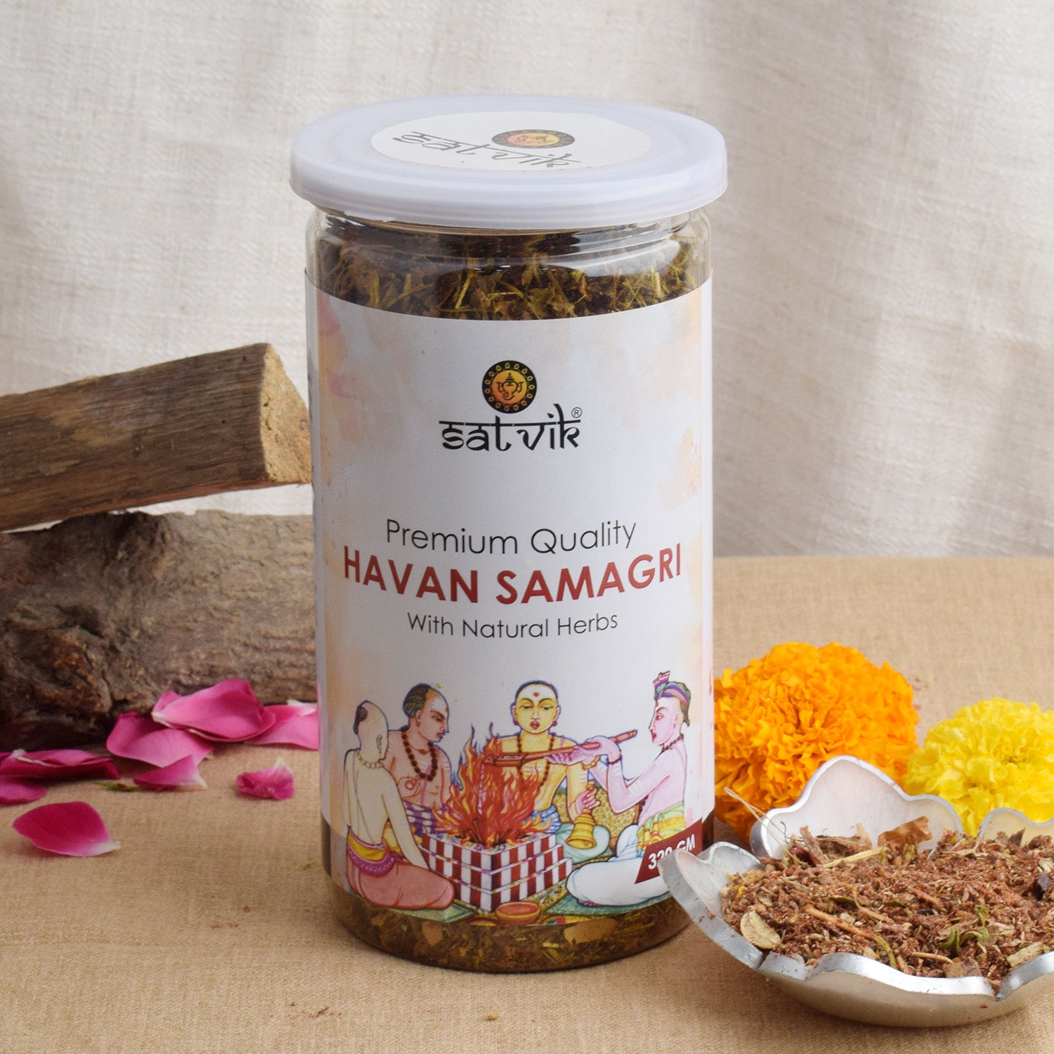 Satvik's hawan samagri is made from Natural herbs, jadi butis and natural fragrance, is used for any type of hawan, puja, yajna. The Hawan samagri is help to create a calming and peaceful atmosphere during pujas and hawan rituals.