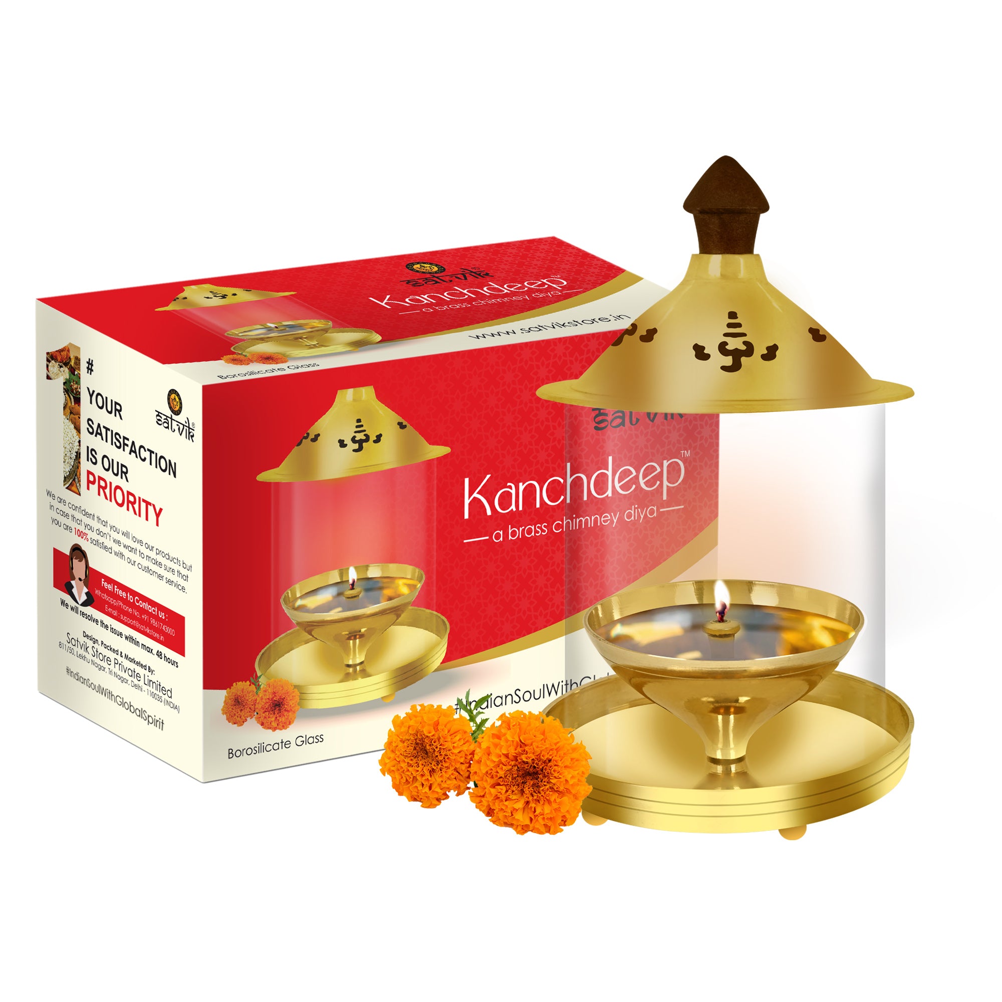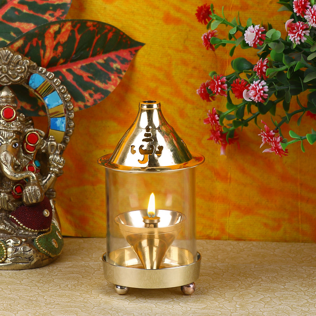 BUy Online Pure Brass Kanchdeep Akhand Chimney Diya | Satvikworld.com