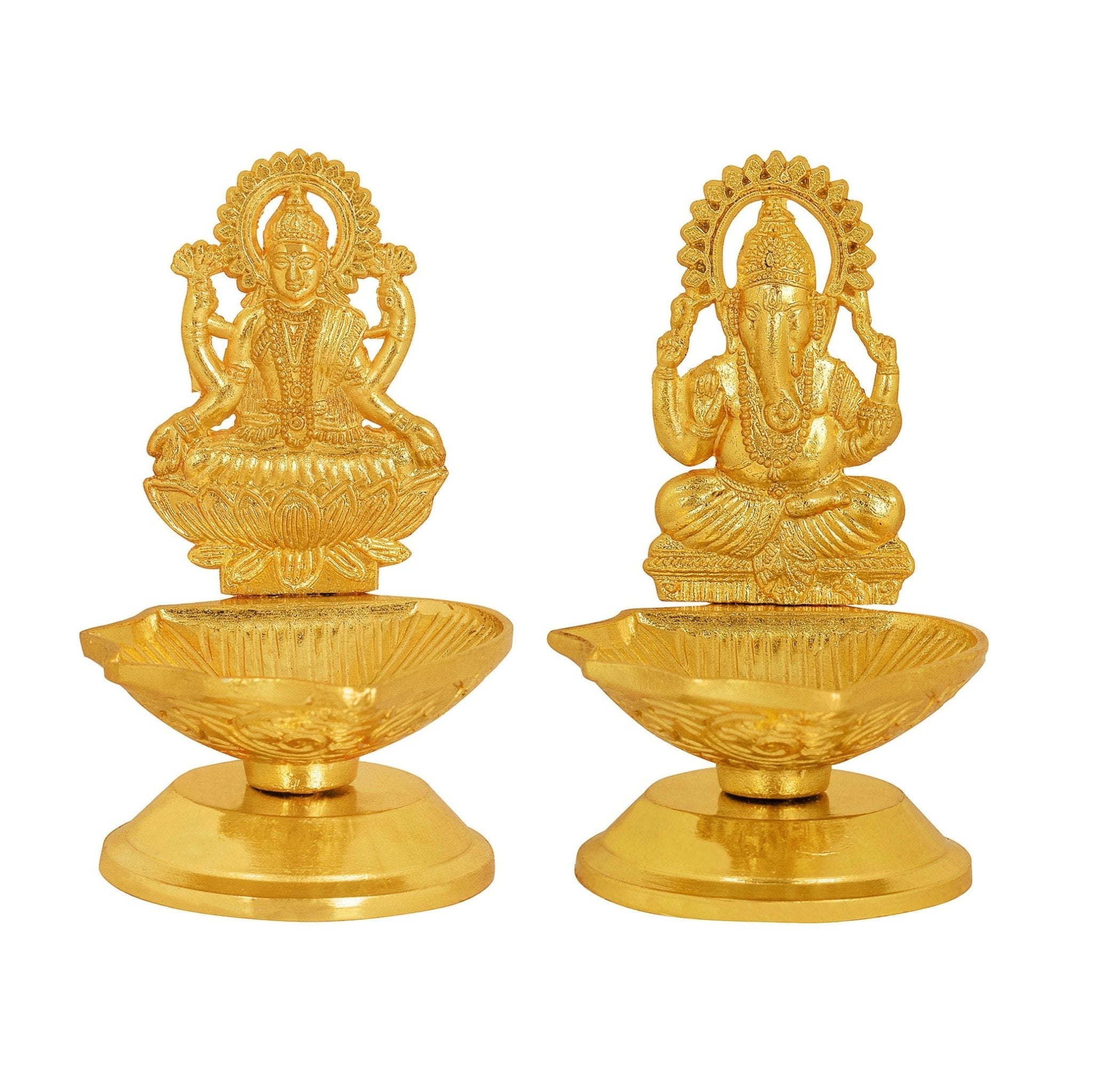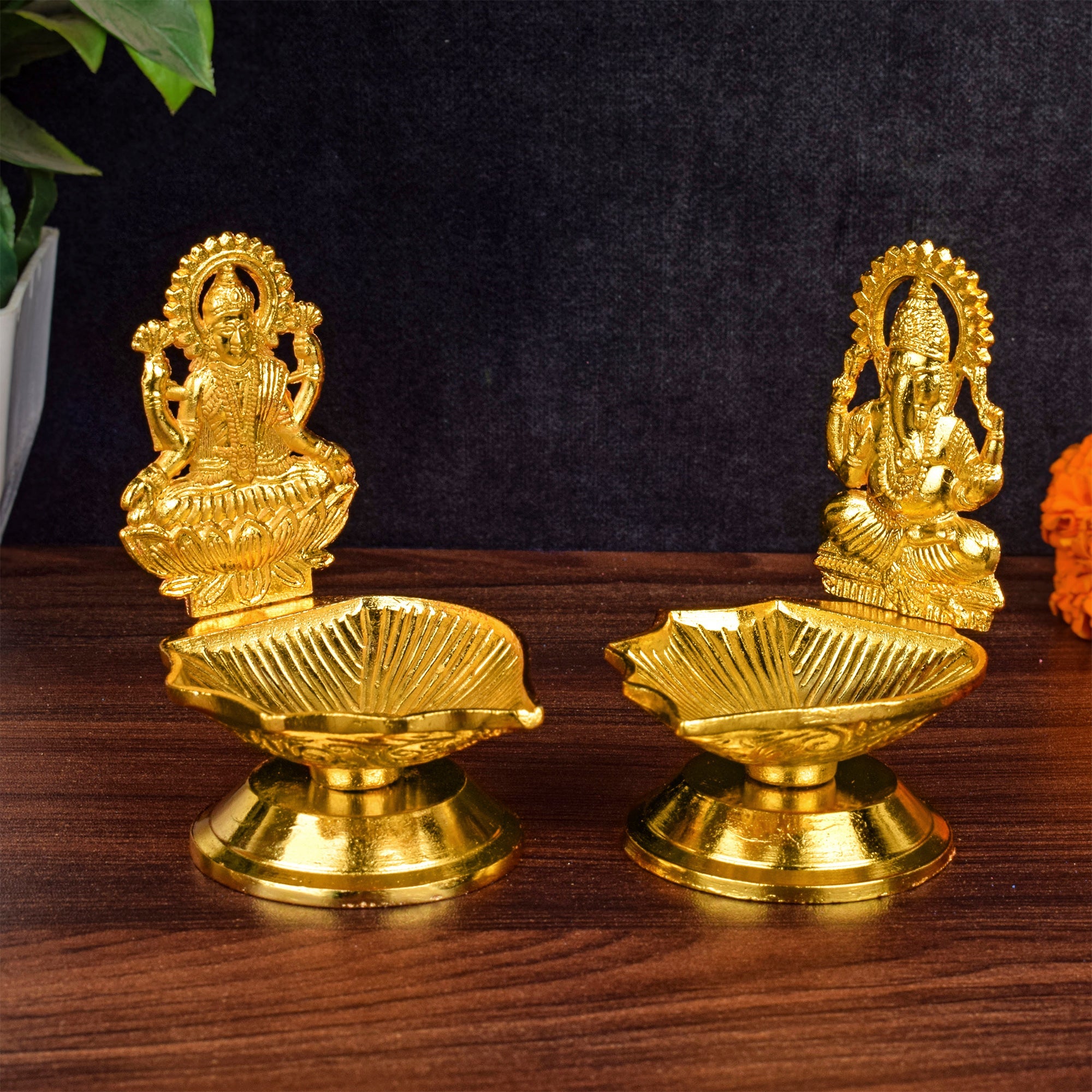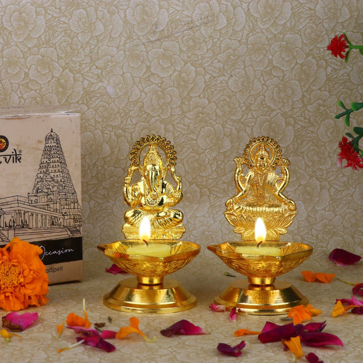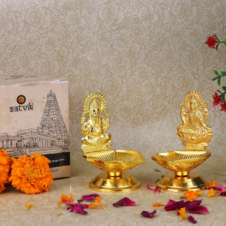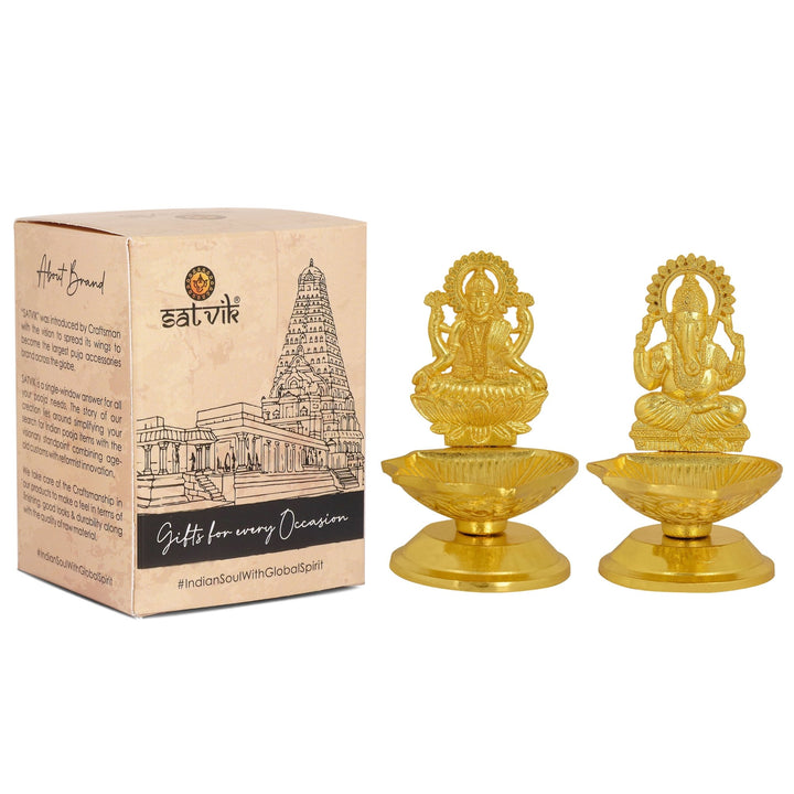 Buy Online | 2 Pc Laxmi Ganesha Pair Metal Diya | Satvikworld.com