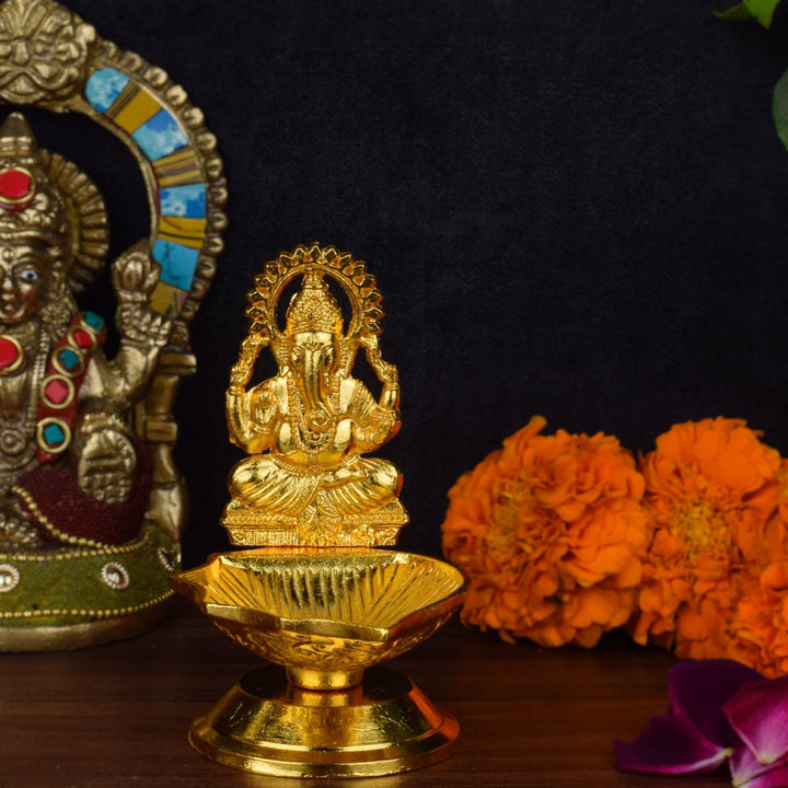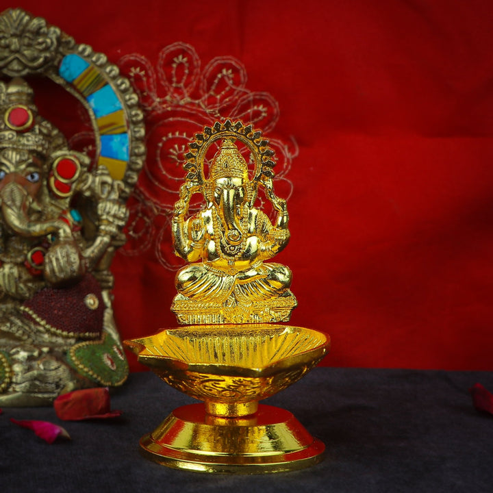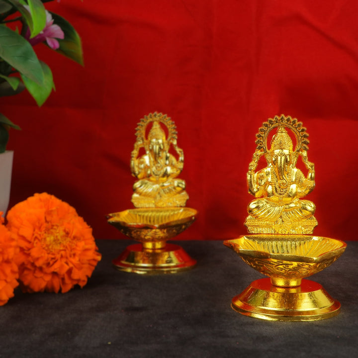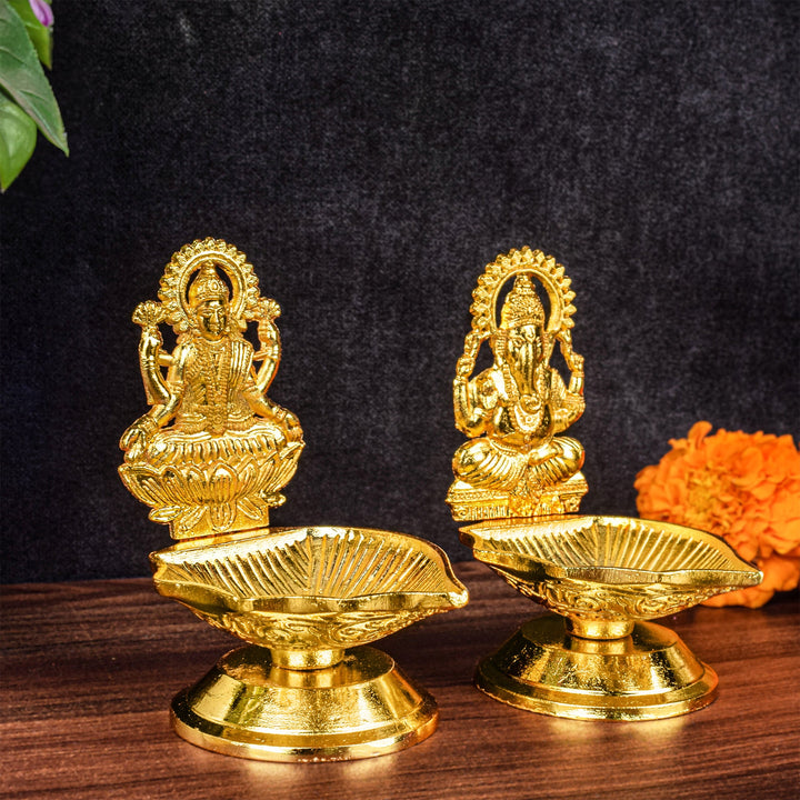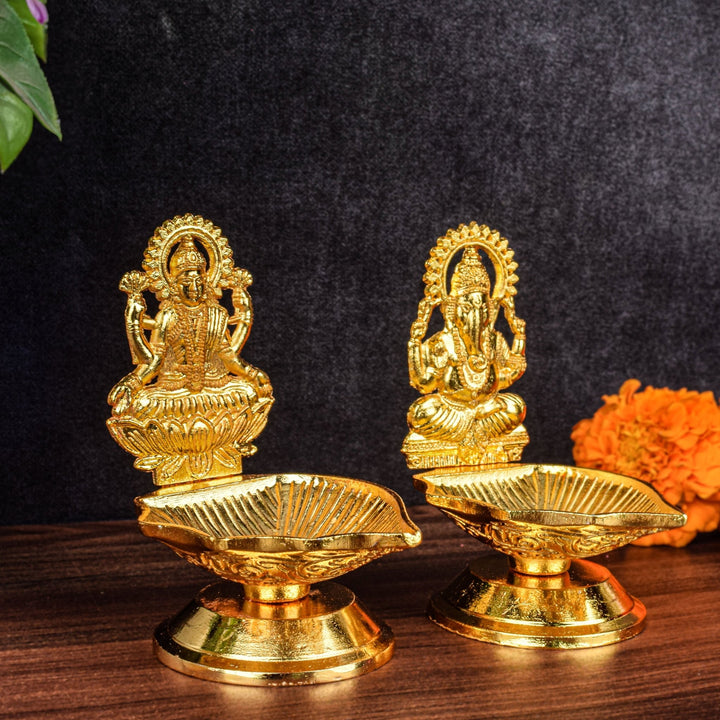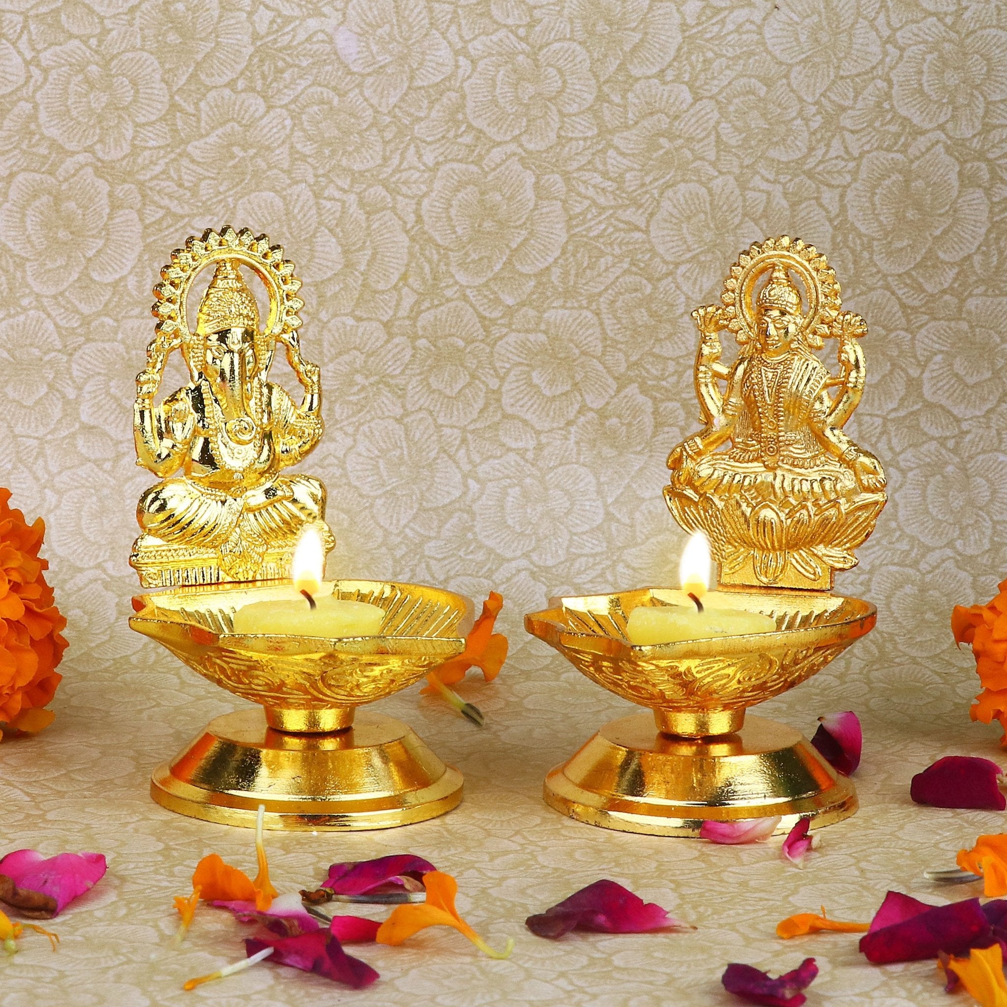 Buy Online | 2 Pc Laxmi Ganesha Pair Metal Diya | Satvikworld.com