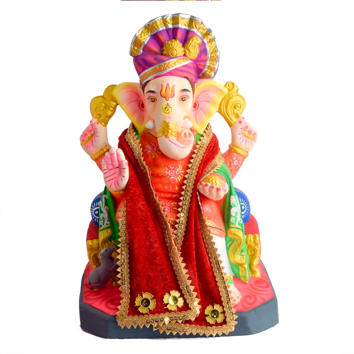 Joyful red Patka | Ganesh Angvastra | Ganpati decoration red cloth | Traditional red Ganesh dupatta | Red festive fabric for Ganpati idol | Vibrant red Patka for Ganesh | Ganesh idol decorative fabric in red |