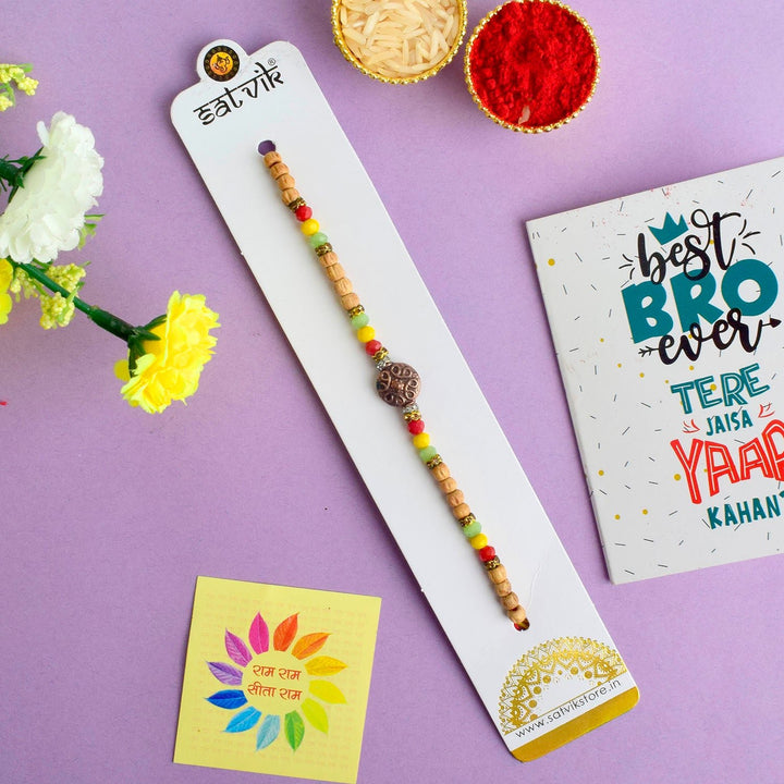 • About Product: Celebrate Raksha Bandhan with our handcrafted Rakhis! Our collection includes beaded Rakhis, elegant Kundan Rakhis, and opulent Zardosi Rakhis, all meticulously designed with love and care. These exquisite creations are a perfect way to express your affection and strengthen the bond with your siblings. Each Rakhi reflects the artistry of our skilled artisans, making them unique and special. Choose from a variety of vibrant colors, intricate patterns, and sparkling stones to find the perfect Rakhi that complements your sibling's style. Embrace the tradition of Raksha Bandhan with our handcrafted Rakhis and create cherished memories that last a lifetime. Shop now and make this Raksha Bandhan an extraordinary celebration of love and togetherness!