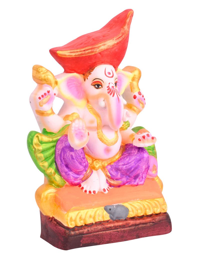 Eco Friendly Ganesha statues are made of 100% biodegradable and eco-friendly material by using Shadu Mati Clay Mitti, which dissolves easily in water. The colours used are also natural, and they decompose and dissolve in water easily. Although they have been made all across India, West Bengal and Maharashtra often employ skilled artisans to make them.