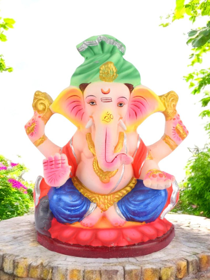 Material: Our Shuban Eco-Friendly Ganesha Idol are Made of 100% Bio-degradable Eco Friendly Mud/Mitti. Sadhu Matti Clay.Hand-painted with Eco Friendly Non-Toxic Multi Colors.