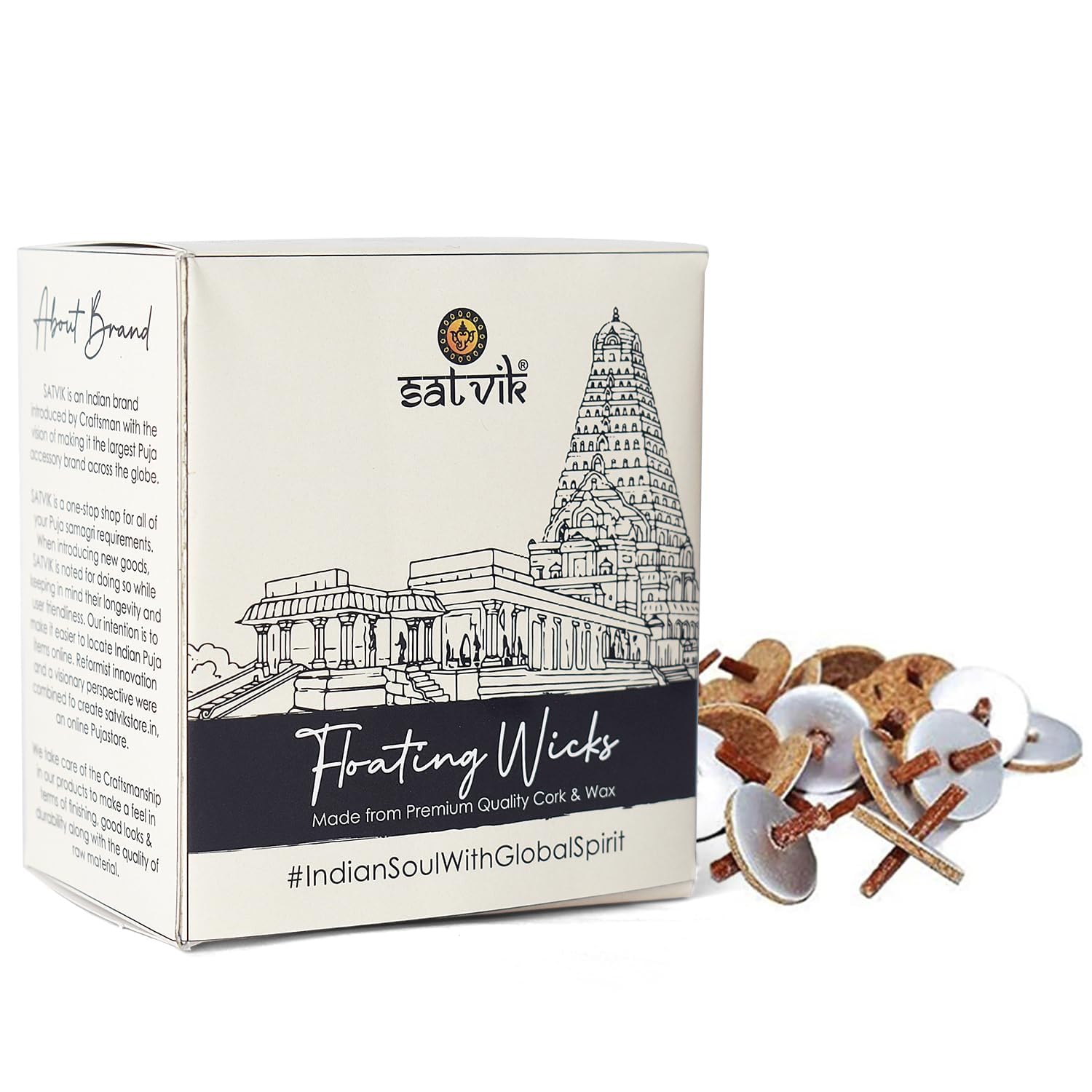 SATVIK 100 Pc Round Floating Wicks for Oil Cups with Cork Disc Holders
