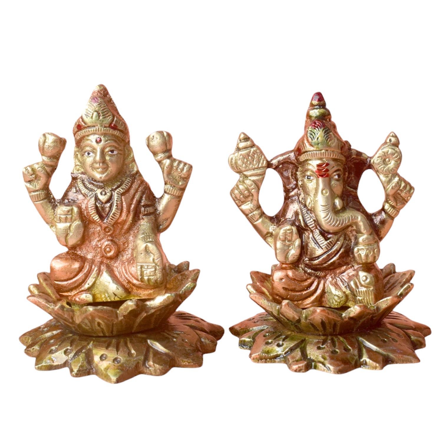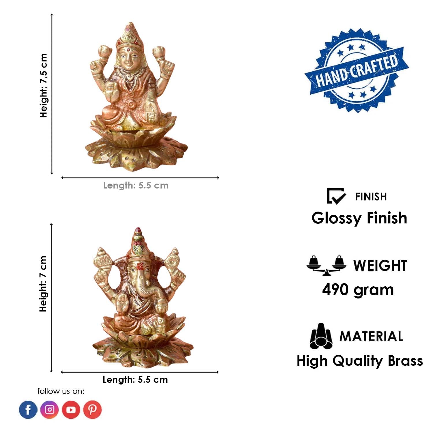• Item Name: 2.8 Inch Exquisite Handcrafted Brass Lakshmi Ganesha Idol