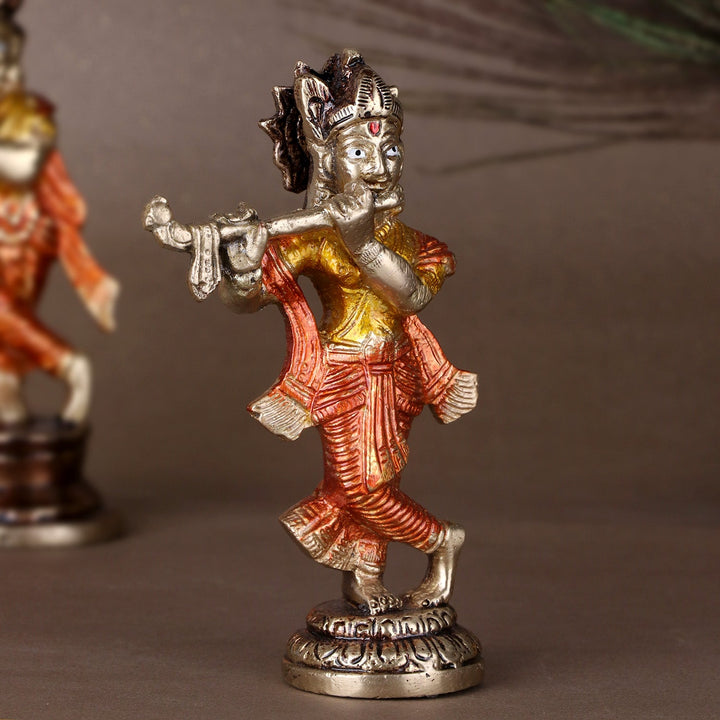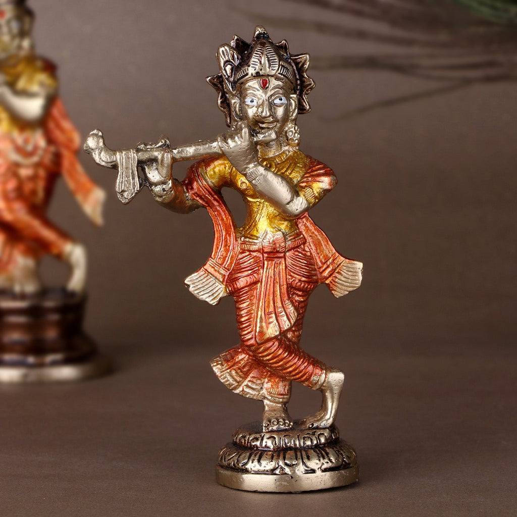 About Product: Lord Krishna Colorful Brass Idol, Pital Krishna Murti, and Krishna with Flute are symbols of Love, Wisdom, Success, and Prosperity that are meant to shield you from all forms of negative energy. Handmade items created by Indian artisans using modern design. Ideal gift for a housewarming party, office party, home inauguration, or return gift suggestion.