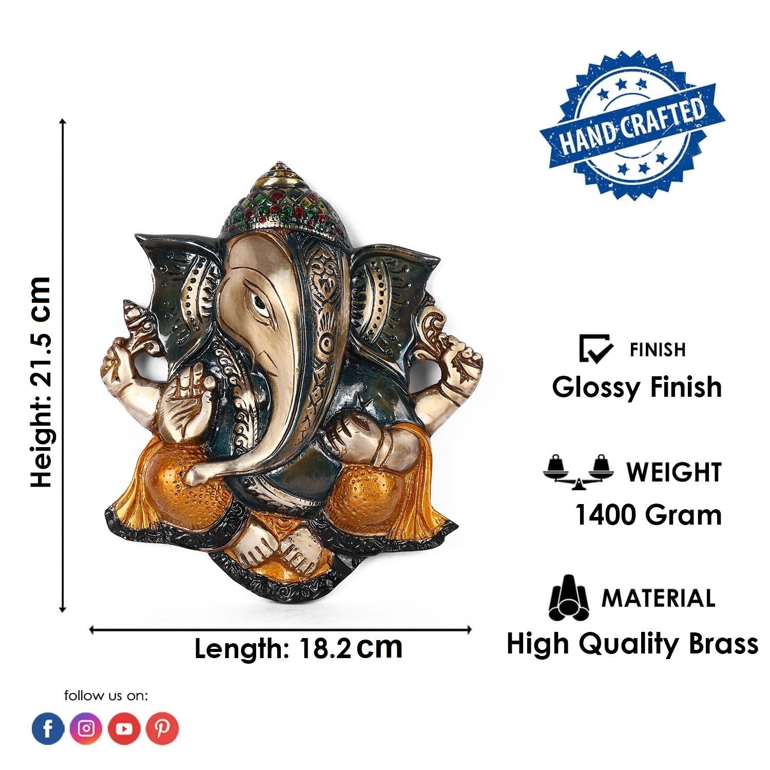• Quality & Craftsmanship: Keeping the purity of Wall Hanging Ganesh, The Wall Hanging is made from Virgin Quality Brass Material which makes it 100% Pure and Long lasting, High Quality Finishing and Detailing Work.