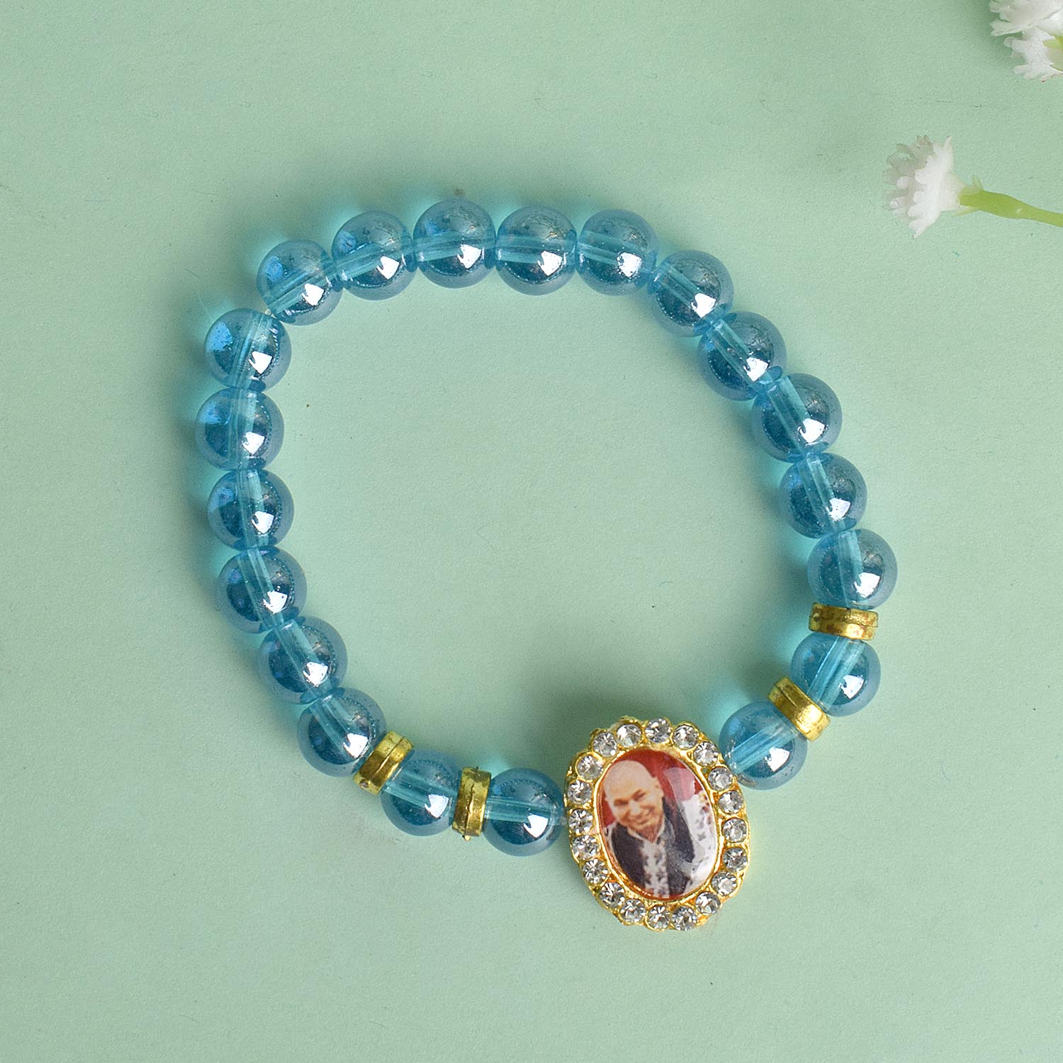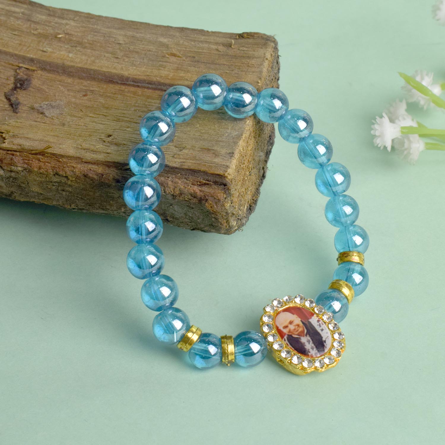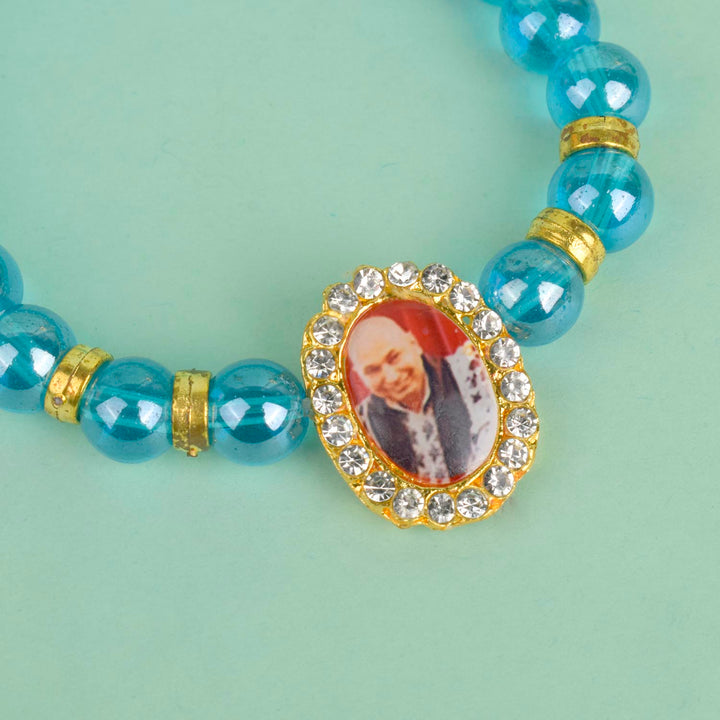 Buy Online | Blue Shiny Single Layer Guruji Swaroop Bracelet | satvikworld.com – Satvikworld.com