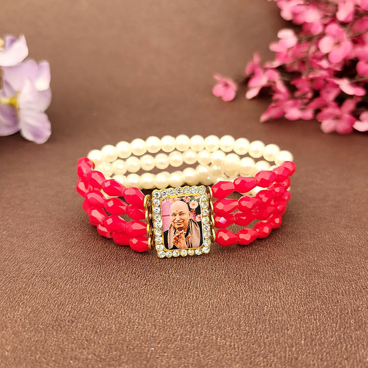 Crystal Red Beads & Pearl Bracelet with Jai Guruji Swaroop