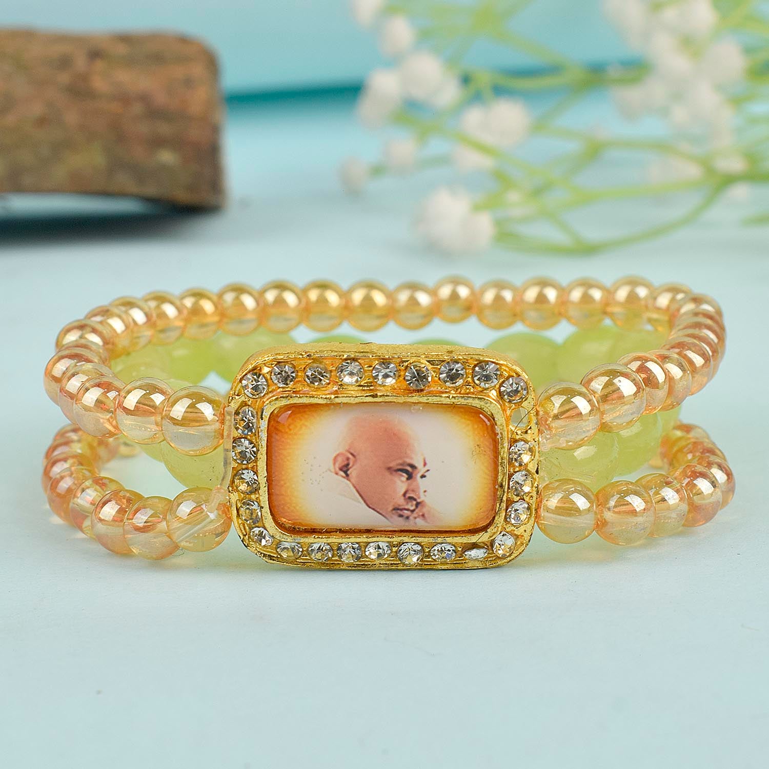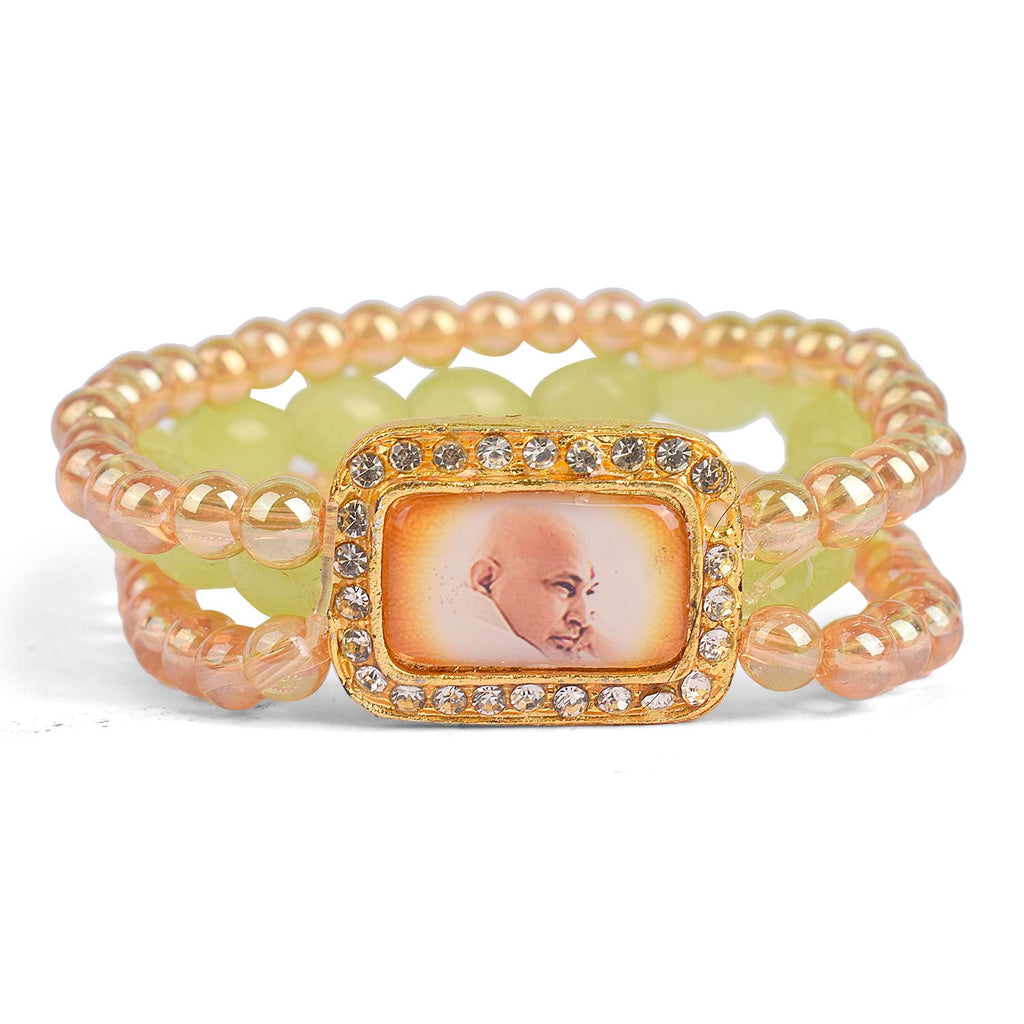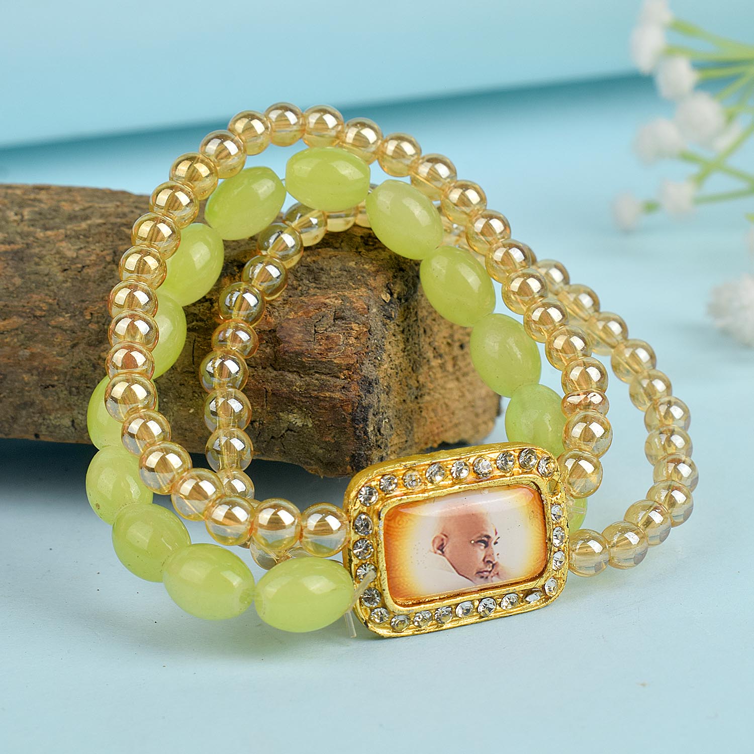 Buy Online | Golden Clear Green Triple Layer Guruji Swaroop Bracelet | satvikworld.com – Satvikworld.com