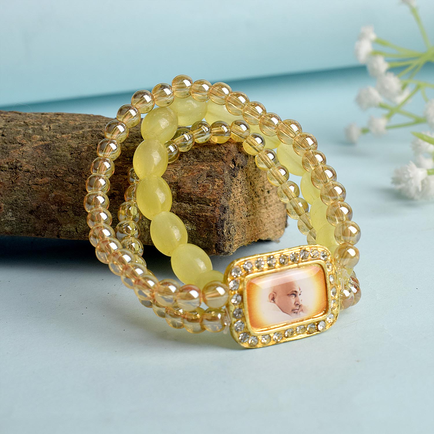 Buy Online | Golden Clear Yellow Triple Layer Guruji Swaroop Bracelet | satvikworld.com – Satvikworld.com