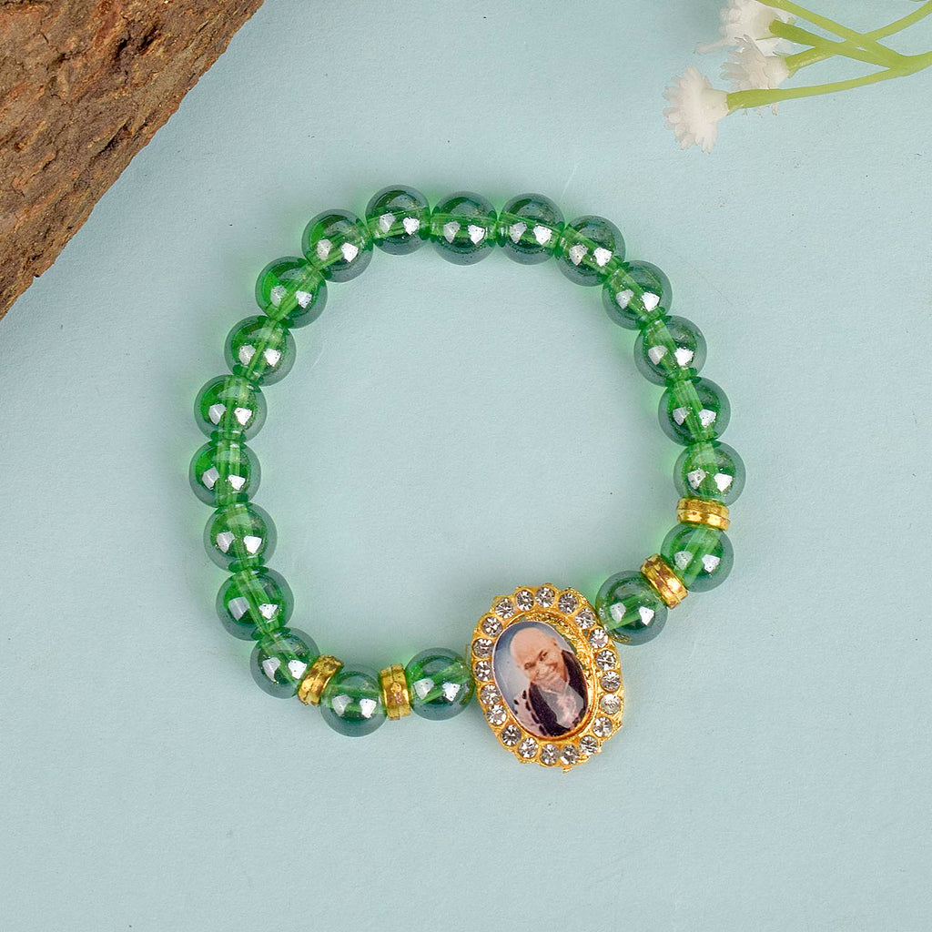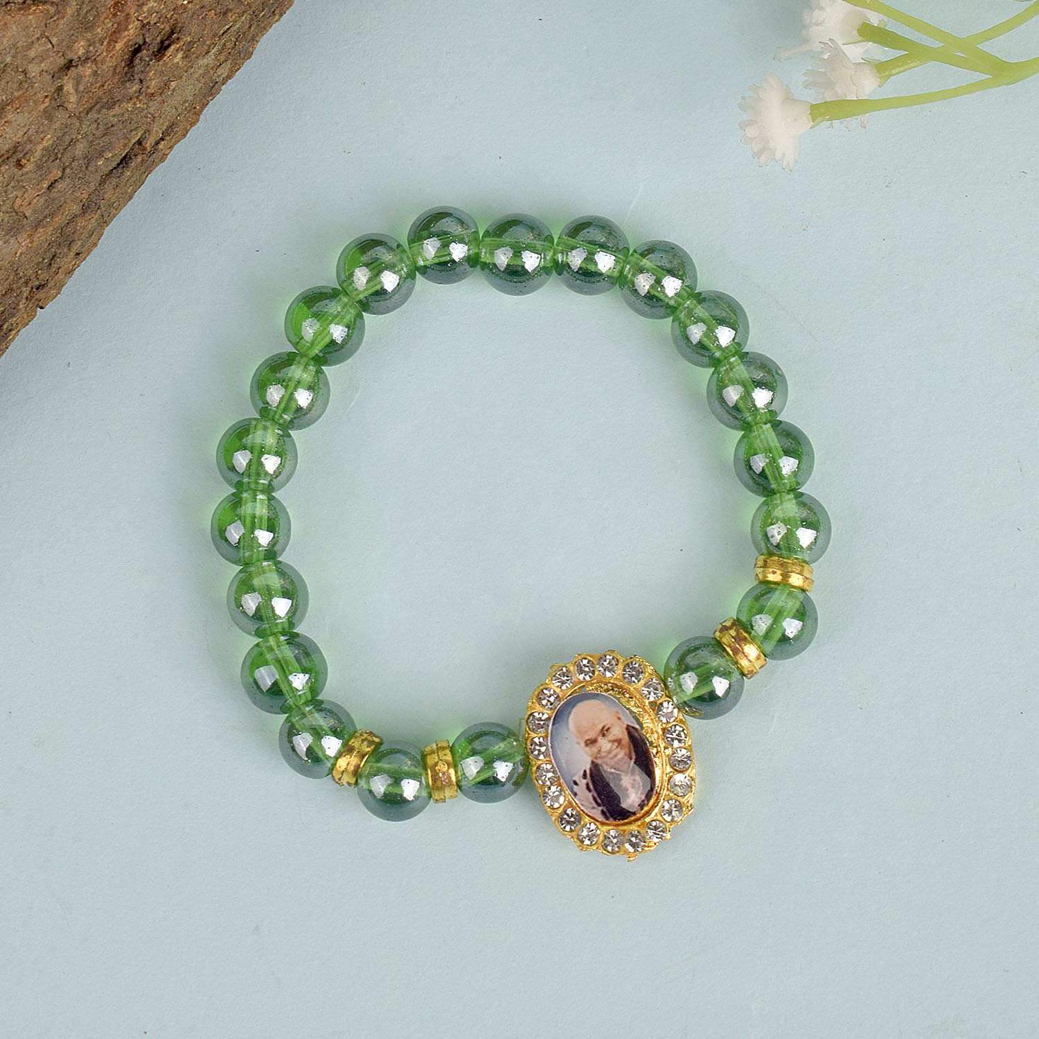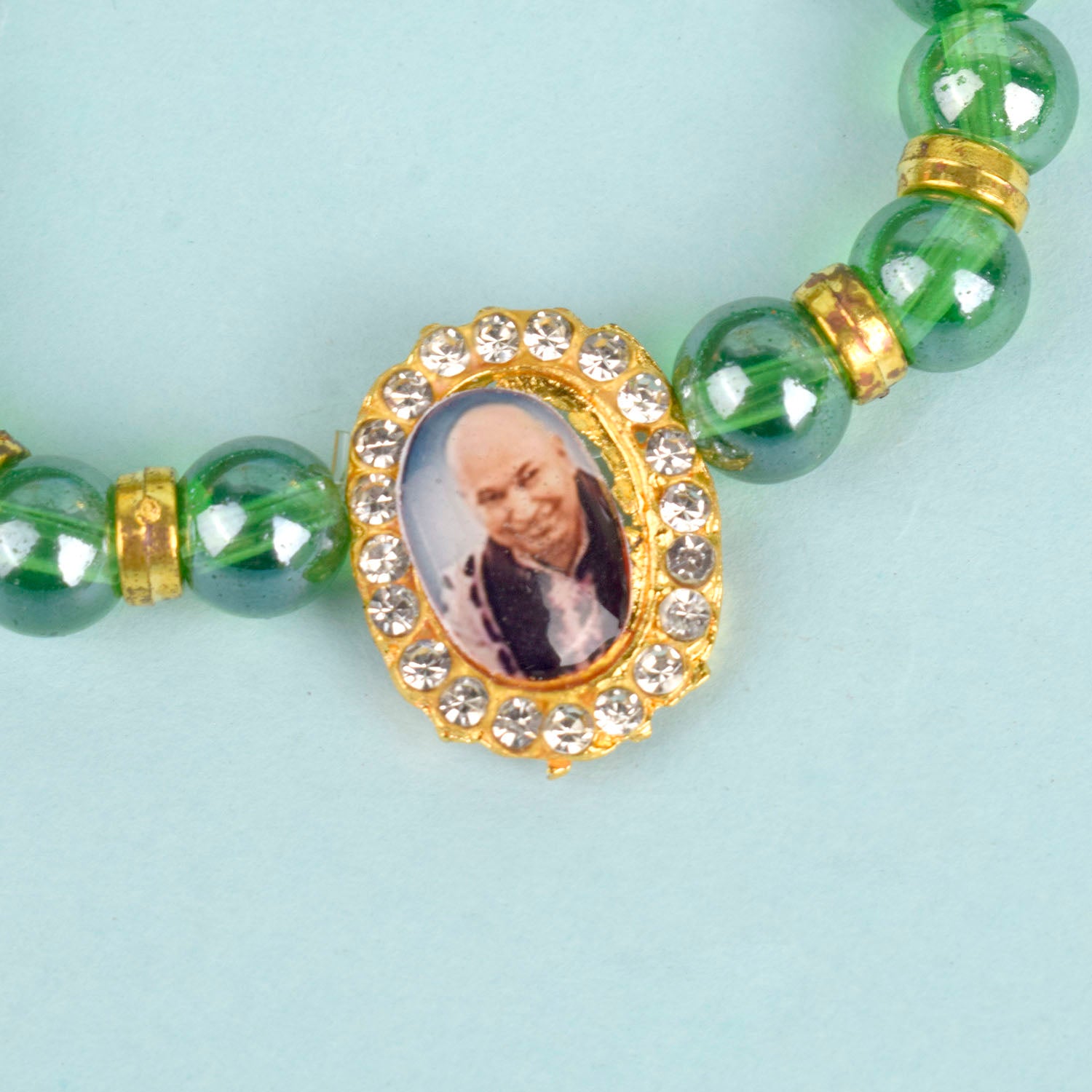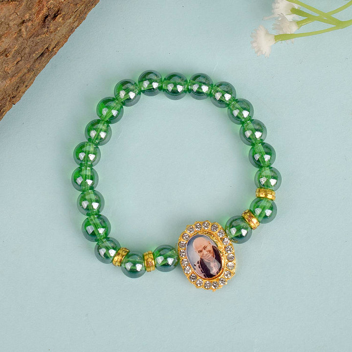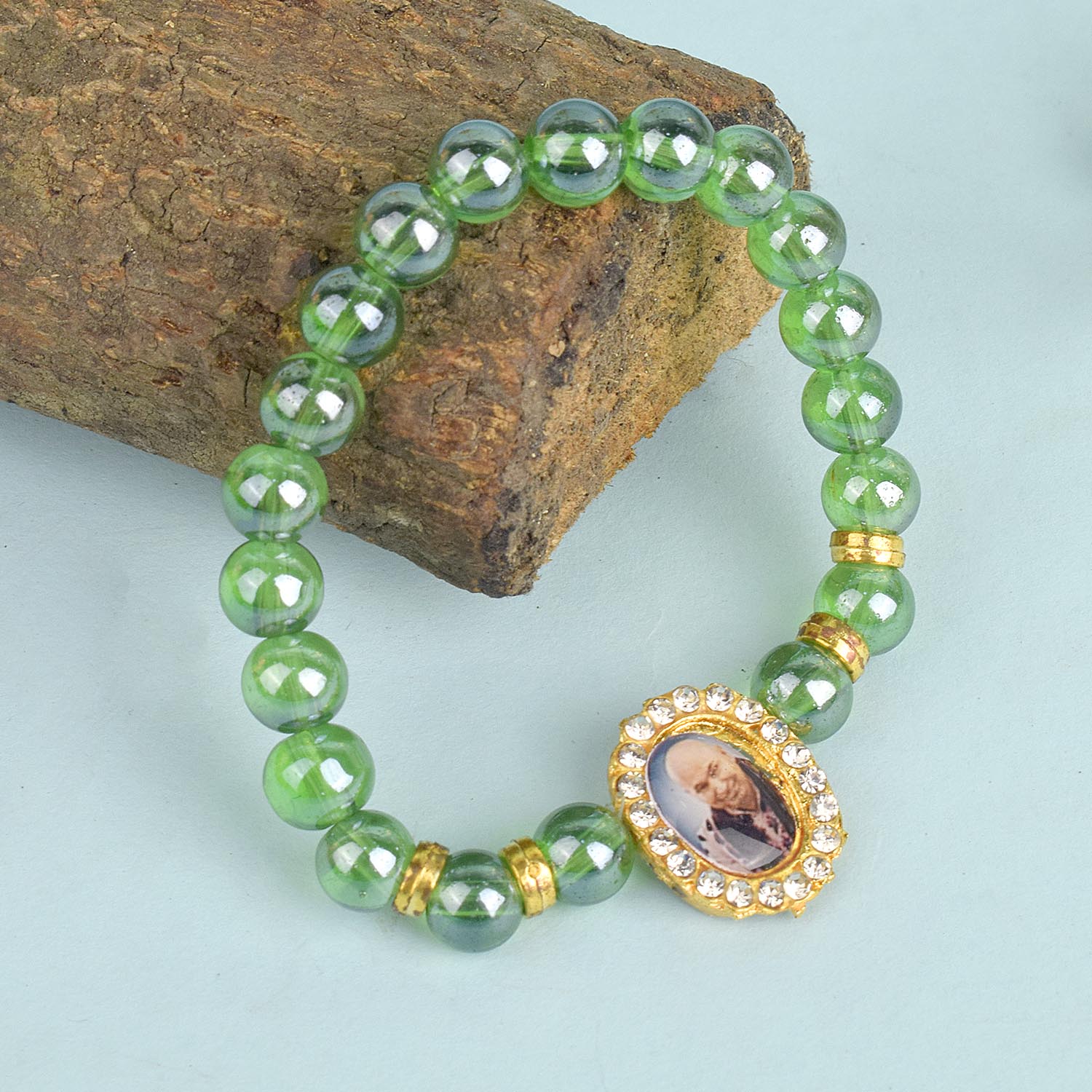 Buy Online | Green Shiny Single Layer Guruji Swaroop Bracelet | satvikworld.com – Satvikworld.com