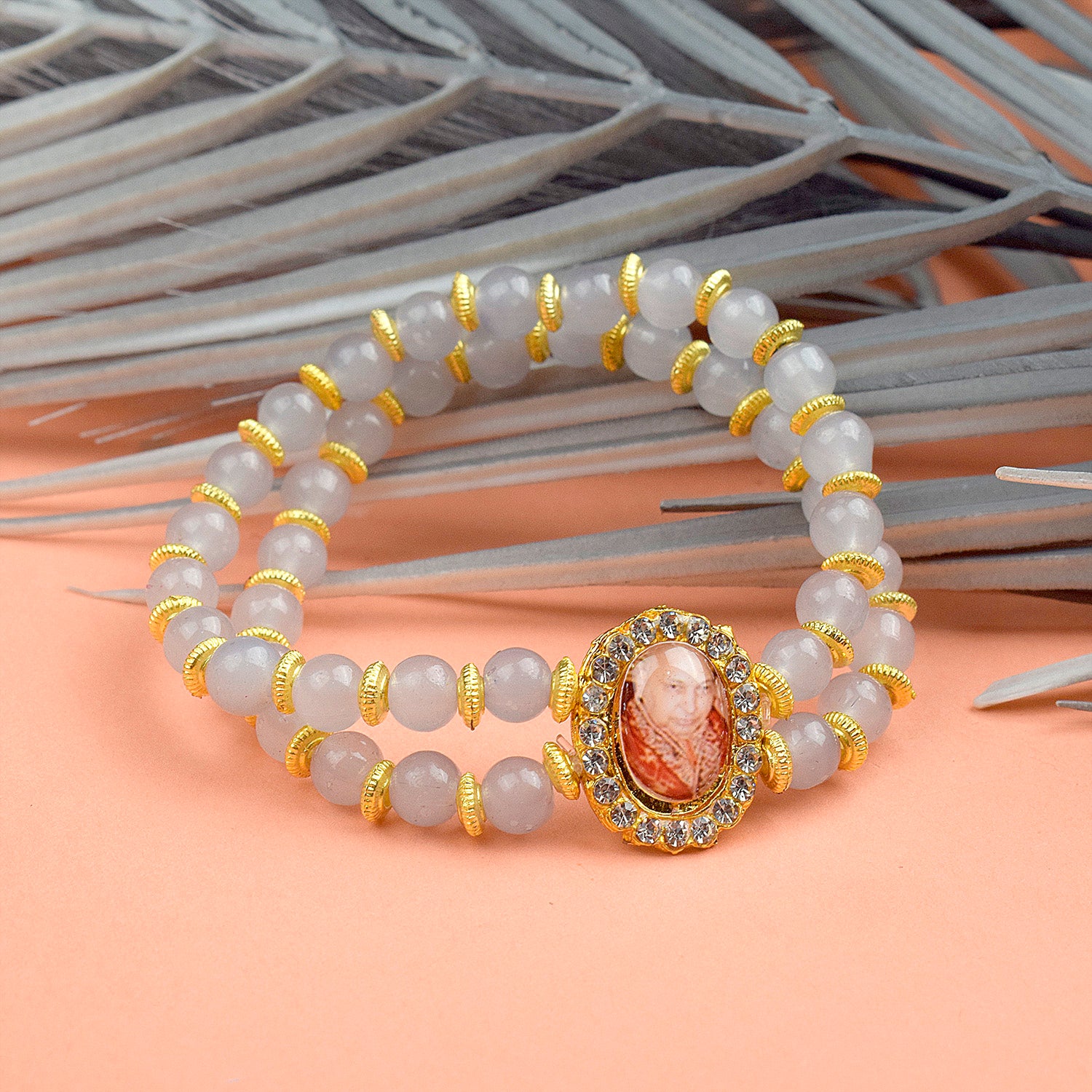• Item Name: Grey Double Layer Bracelet With Guruji Swaroop Handmade Bracelets for Men and Women