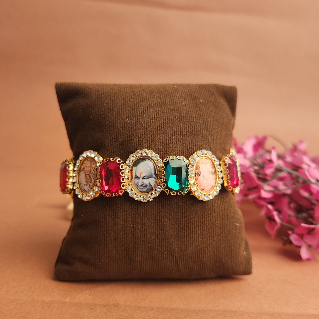 About Product: Guruji Stone Bracelets removes negative energy and and uplift the spiritual, mental and physical Health. Easy to wear, Skin Friendly. You can Gift this Beautiful Beads Bracelets to your family, friends, relative, neighbor on religious occasion like : pooja, kirtan, return gift idea, housewarming, home inauguration, Puja and other. Very beautiful bracelet made of artificial ceramic stones with smooth round finish, each bracelet is handpicked for quality check, Jai Guruji is Photo also there in the bracelet. This is Red and Black matches trend with tradition. Proudly Made in India for Our Devotees.