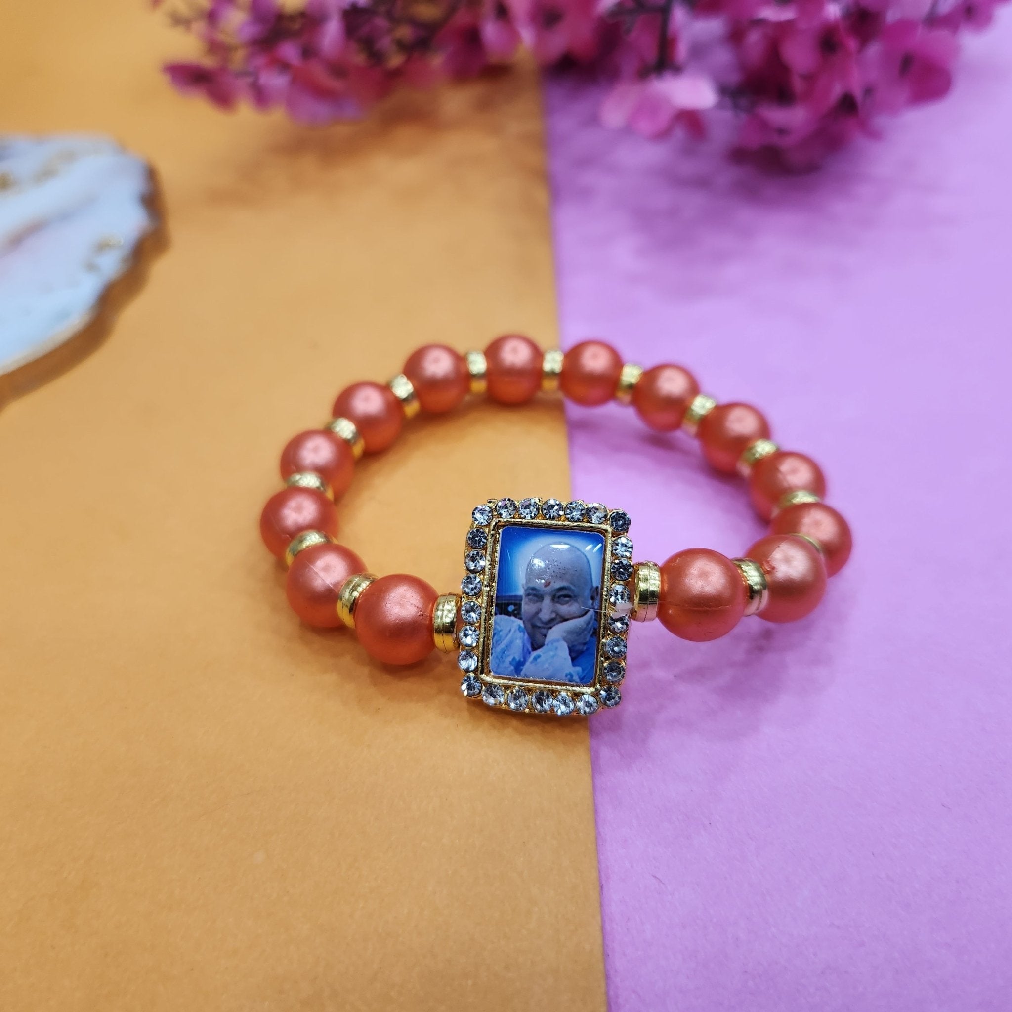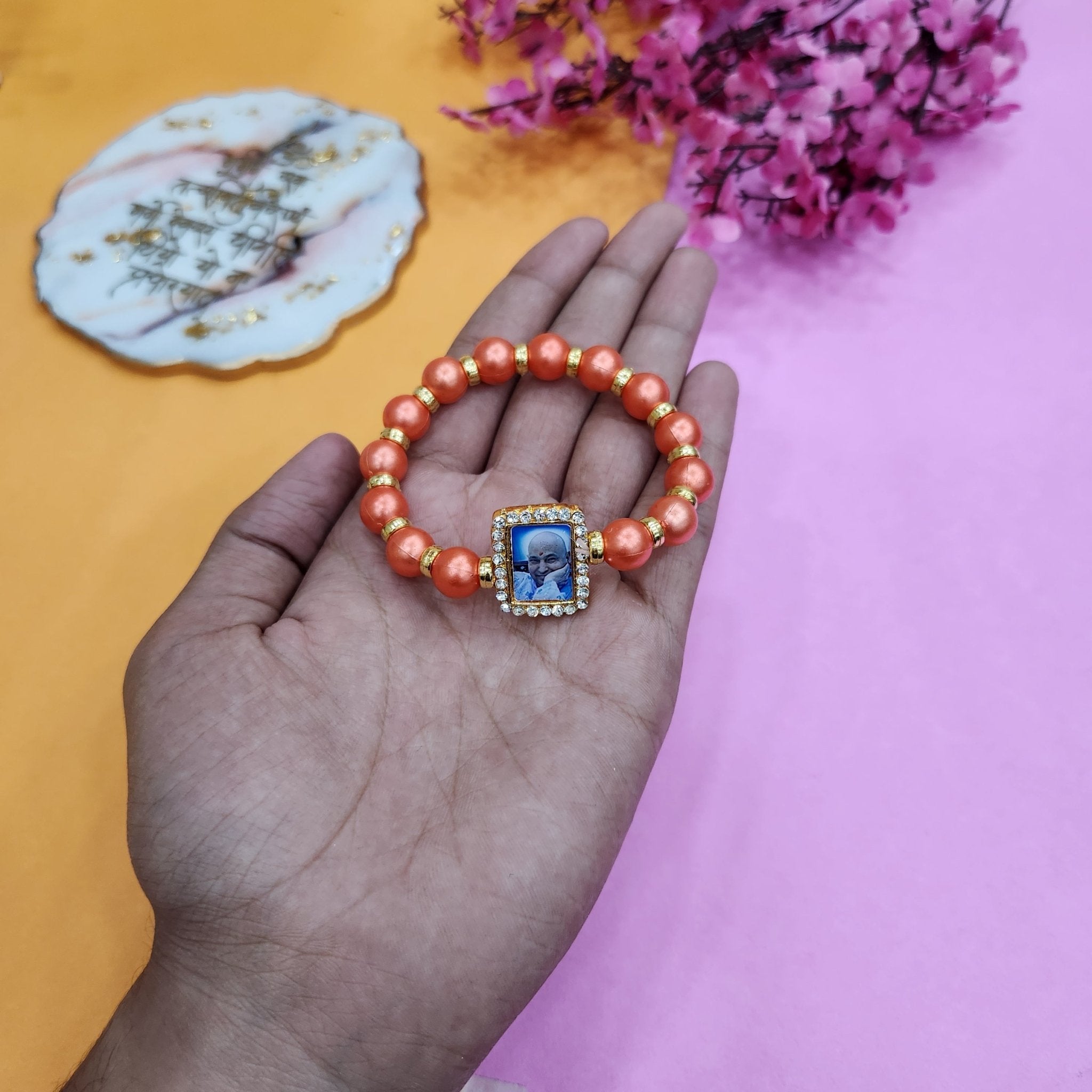 • Item Name: Round Pearl Bracelet with Jai Guruji Swaroop Handmade Bracelets for Men and Women