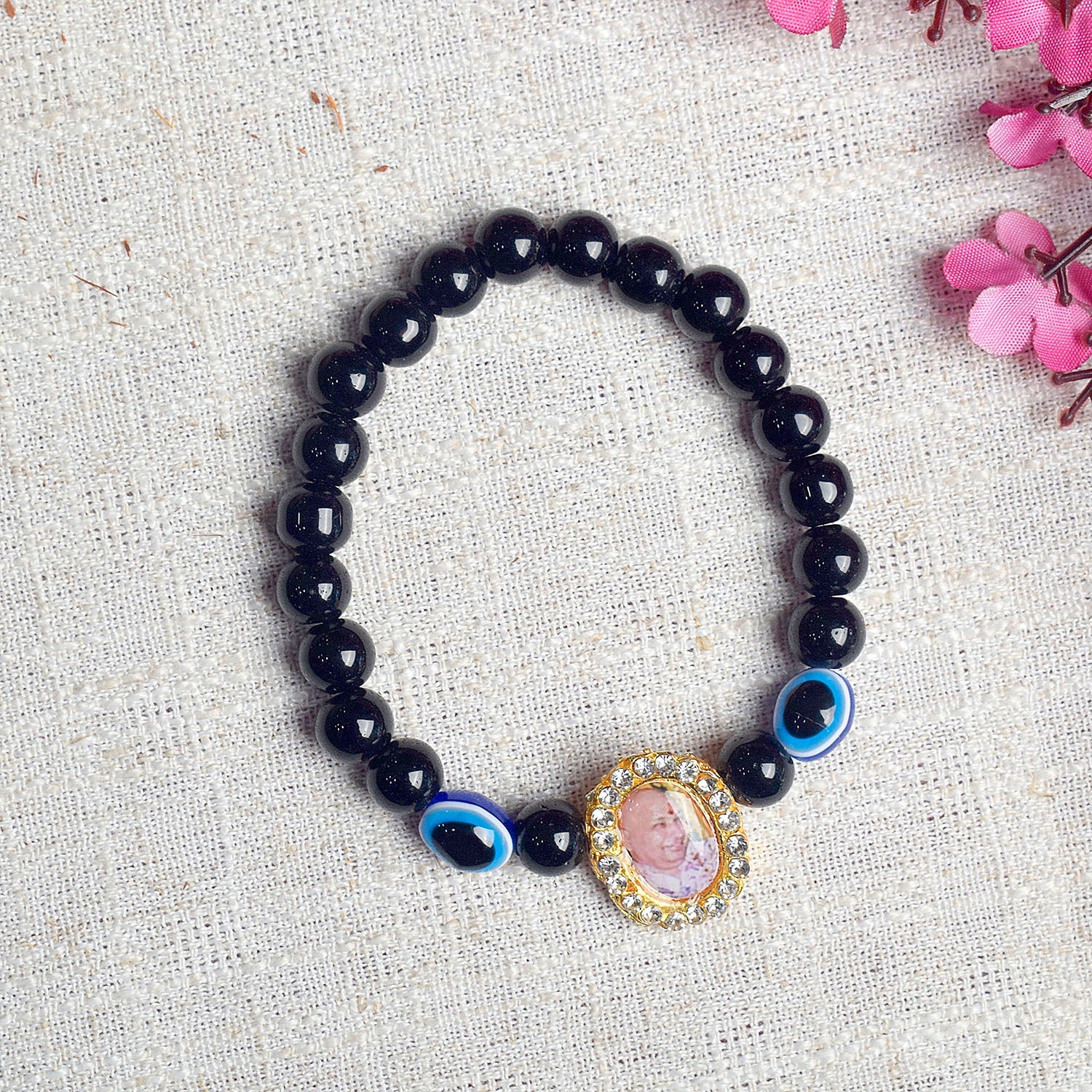 Black Evil Eye Bracelet with Jai Guruji Swaroop Handmade Bracelets for – Satvikworld.com