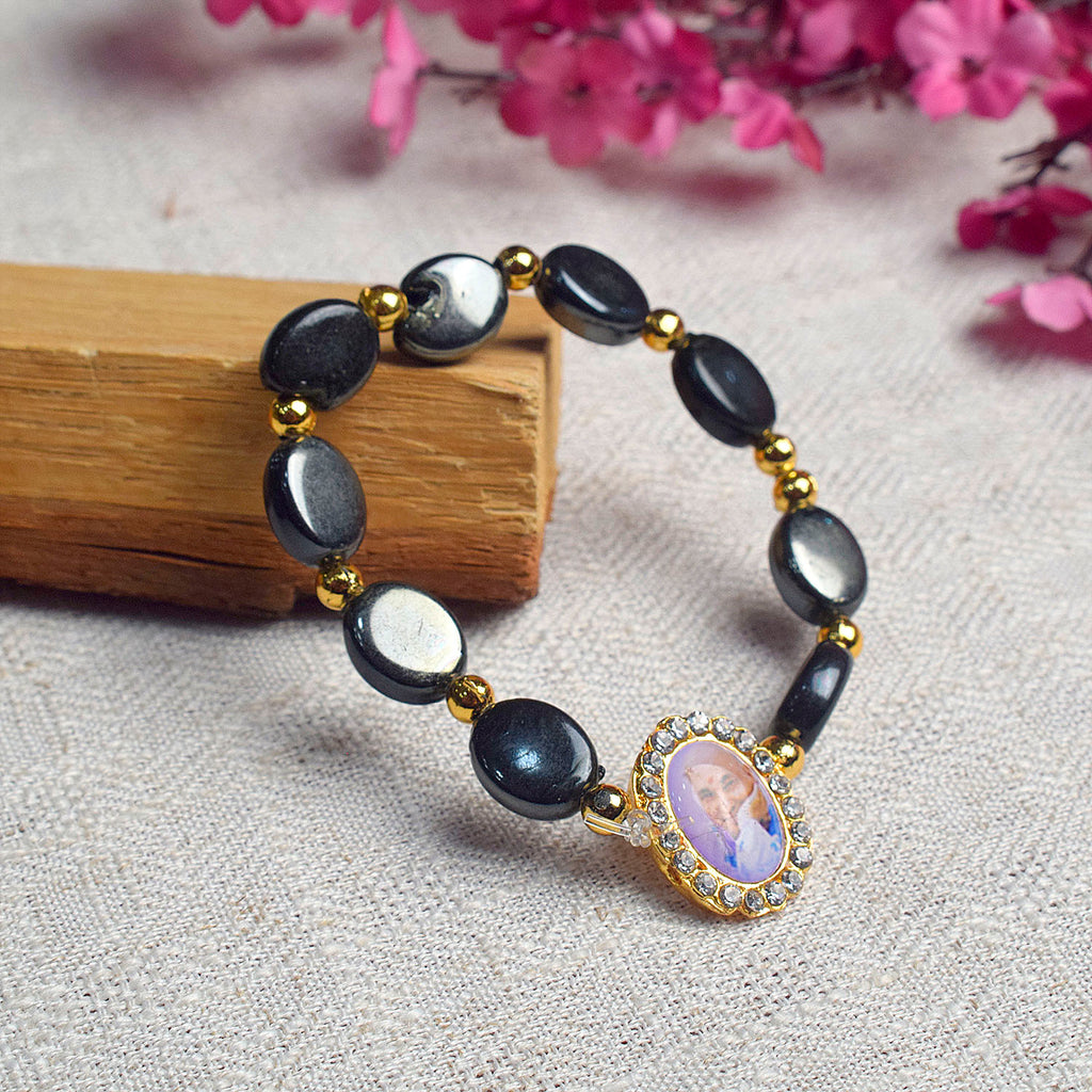 Black Pearl Bracelet with Jai Guruji Swaroop Handmade Bracelets for Men and Women