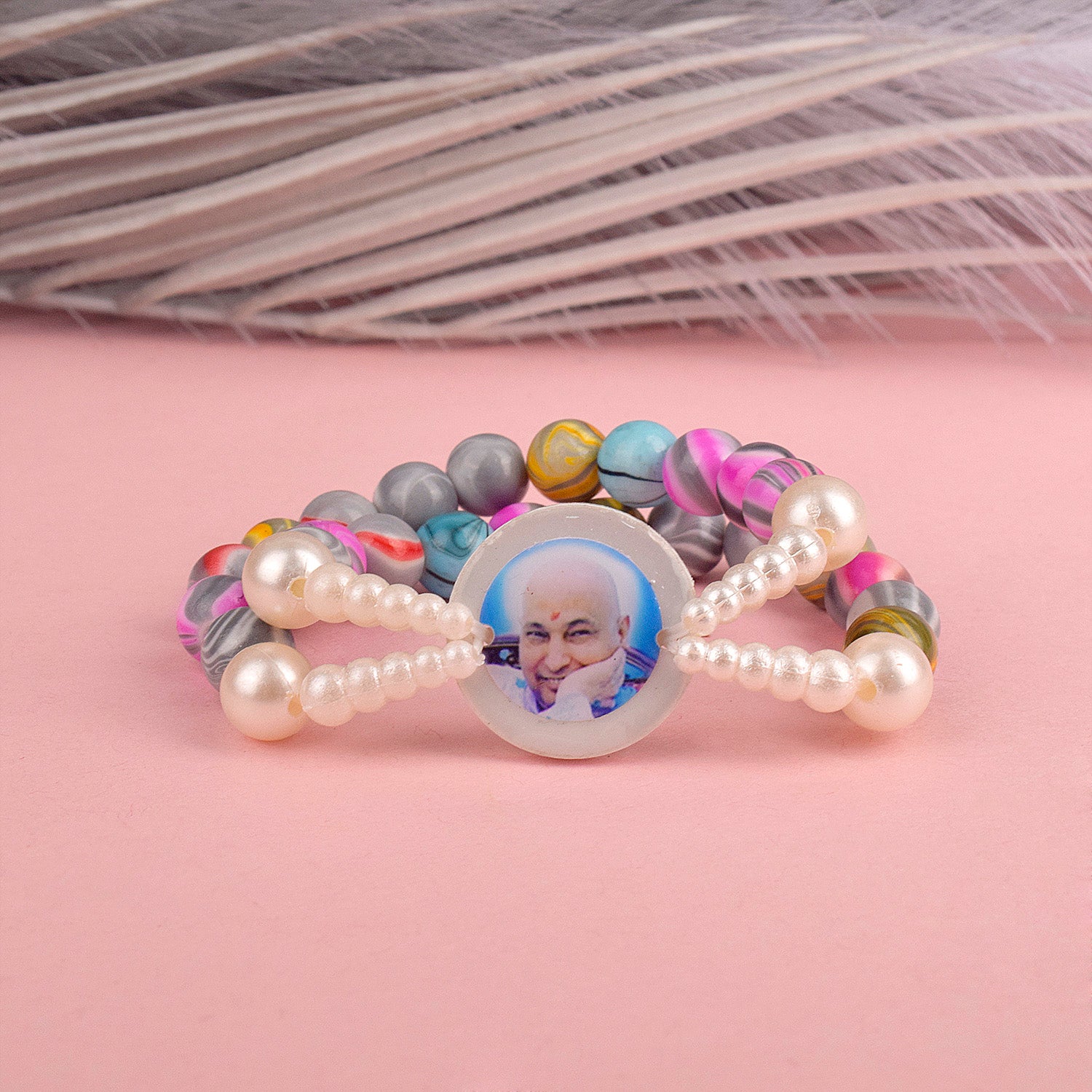 Crystal Multi-Color Beads Double Layer & White Pearl Bracelet with Jai Guruji Swaroop
