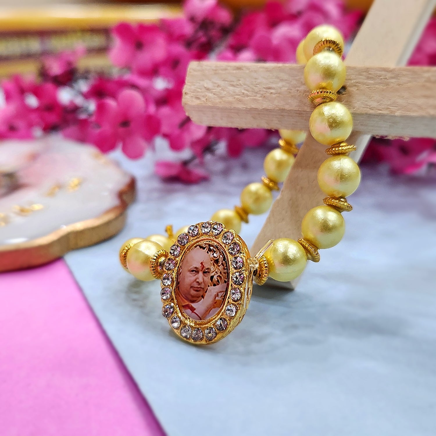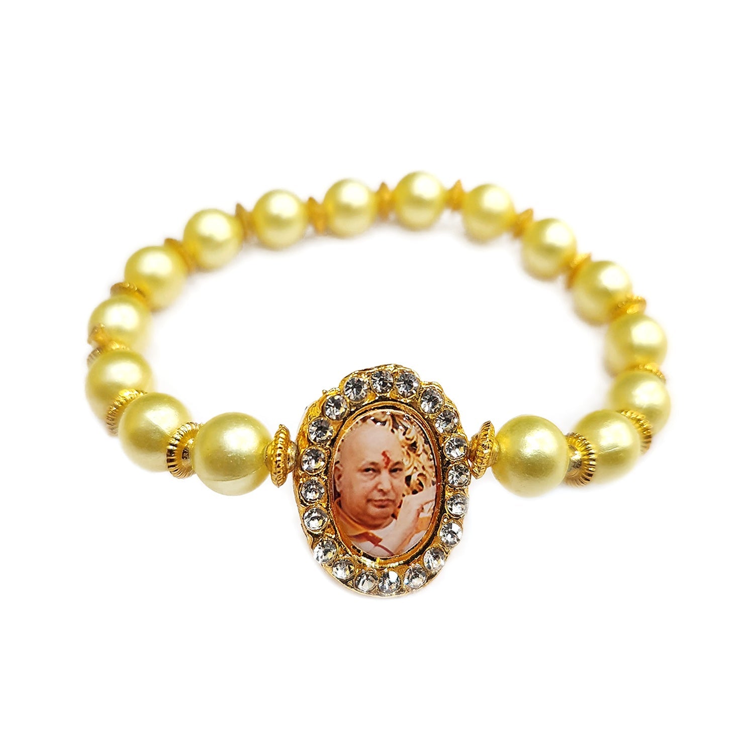 Yellow Beaded Guru Ji Maharaj Handmade Bracelets for Men and Women