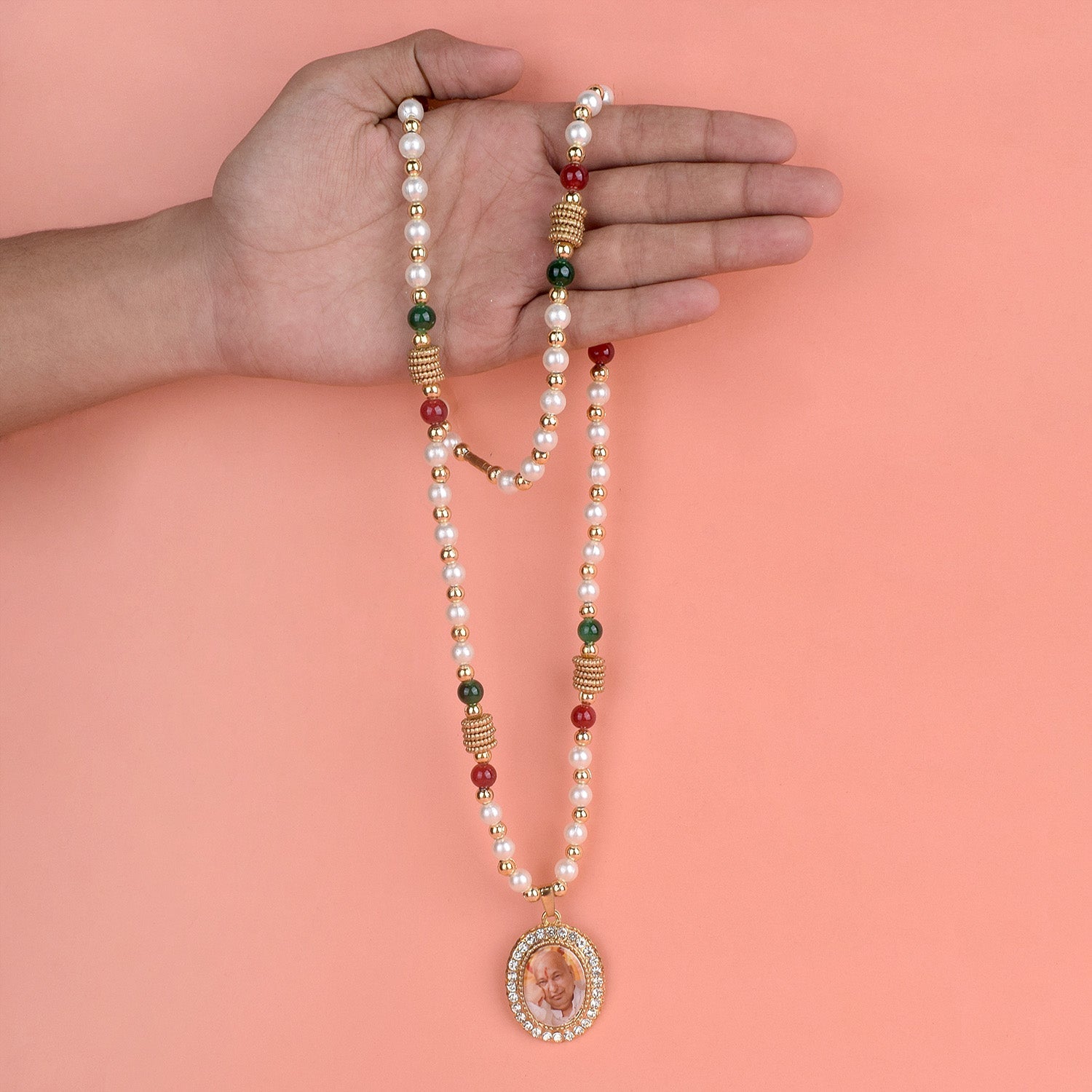 About Product: Guruji Neck Mala – an exquisite blend of elegance and enlightenment. Each bead resonates with ancient wisdom, guiding you towards inner peace. Adorn yourself with this sacred accessory and carry the essence of Guruji's teachings wherever you go. Embrace the journey of the soul.