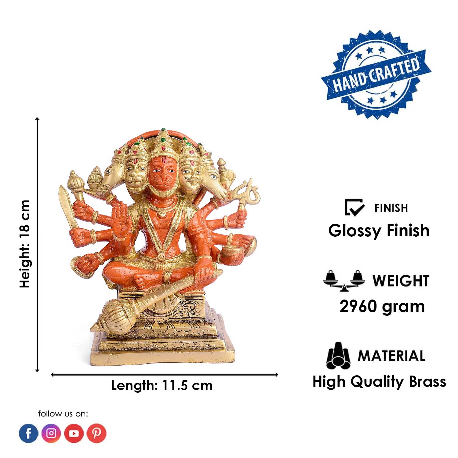 • Material: The Bajrangbali is made from High Quality and Virgin Brass Material.