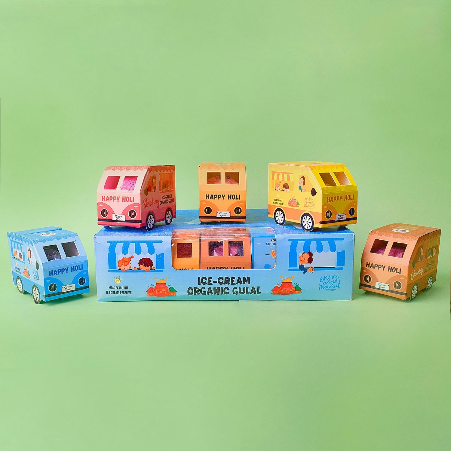 ICE-CREAME Organic Gulal Holi Colors Set of 10 with with Distinctive Car Box Packaging