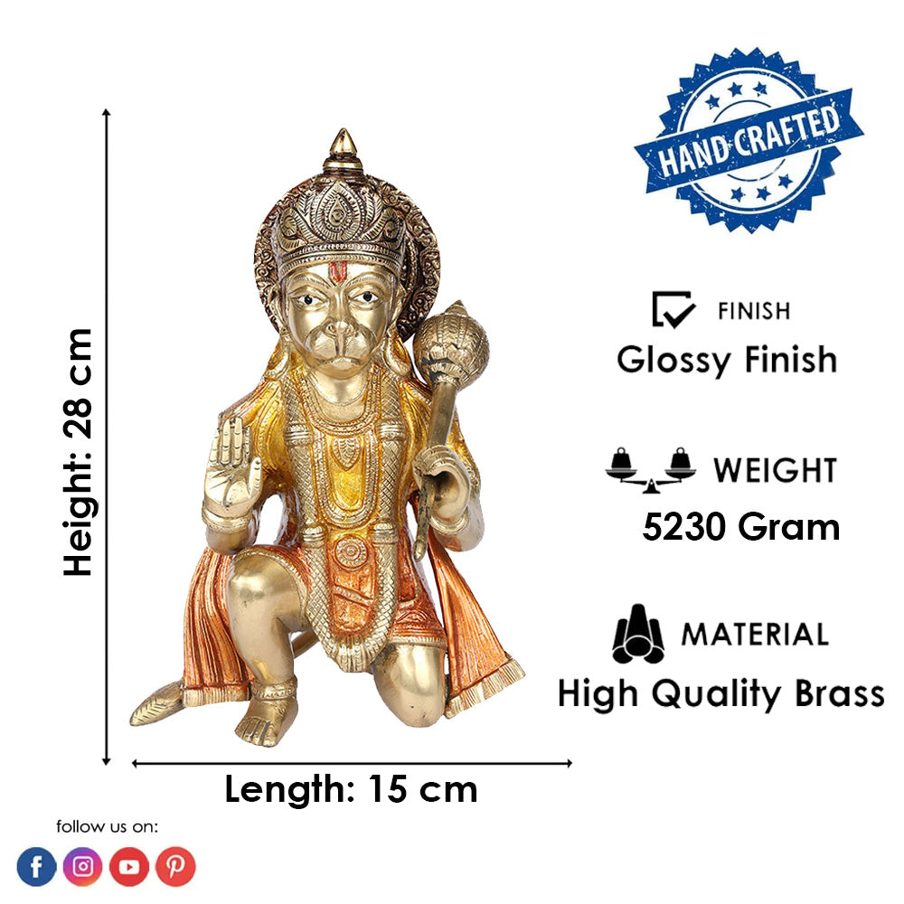 • Item Name: 11 Inch Brass Hanuman Idol with Gadha Protection & Devotion
