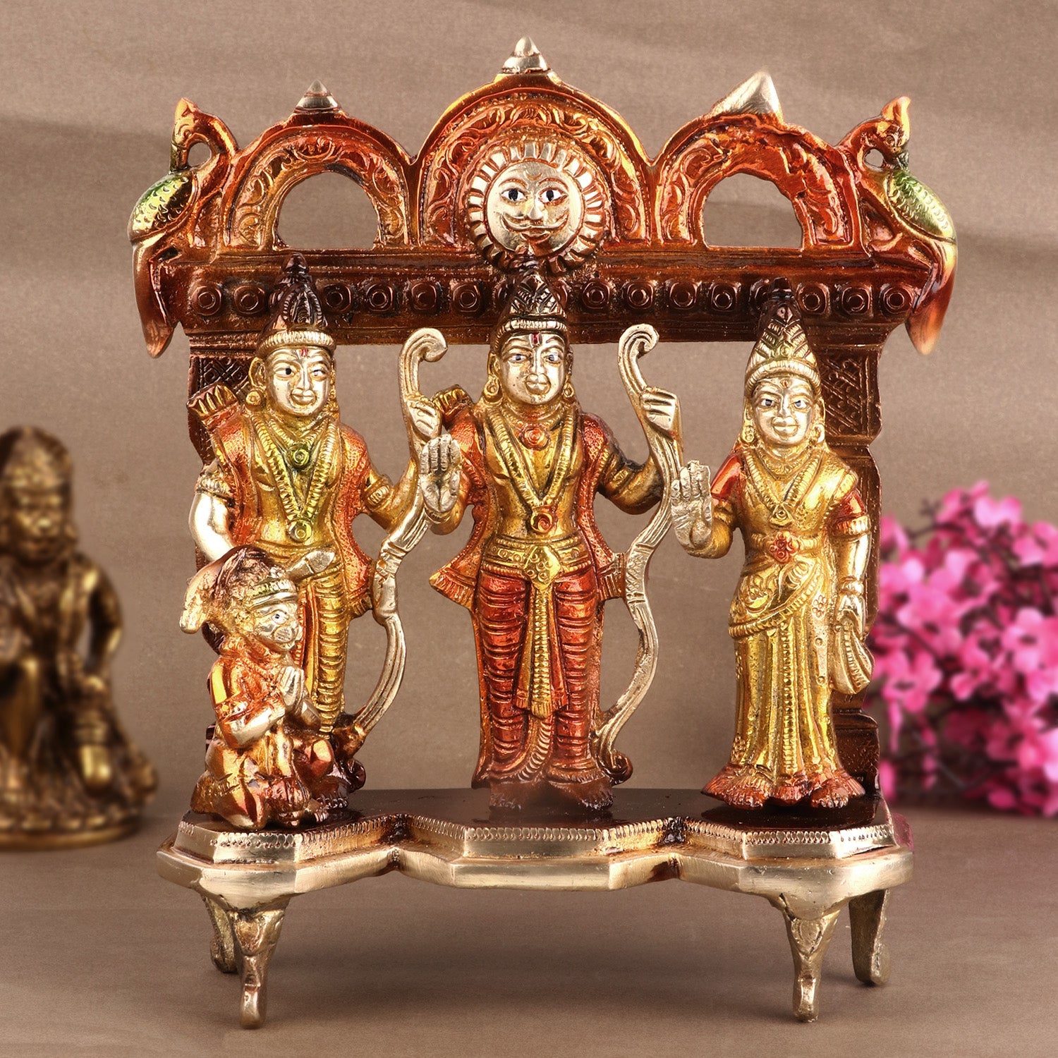 Brass Ram Darbar Idol | Lord Ram Family Brass Idol | Colorful Brass Ram Idol | Exclusive Ram Darbar for Temple | Handcrafted Brass Idol | Brass Idol | Antique Finish Brass Ram Darbar Idol |