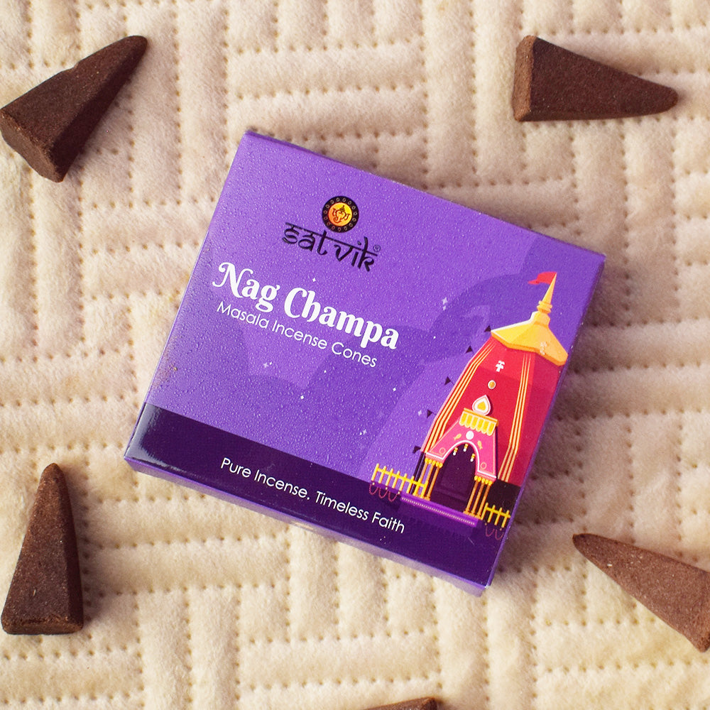 - Chandan Incense Cone: Unveil the calming aroma of pure sandalwood with our Chandan Incense Cone. These cones release a rich and woody scent, ideal for creating a peaceful and meditative environment during your spiritual practices.
