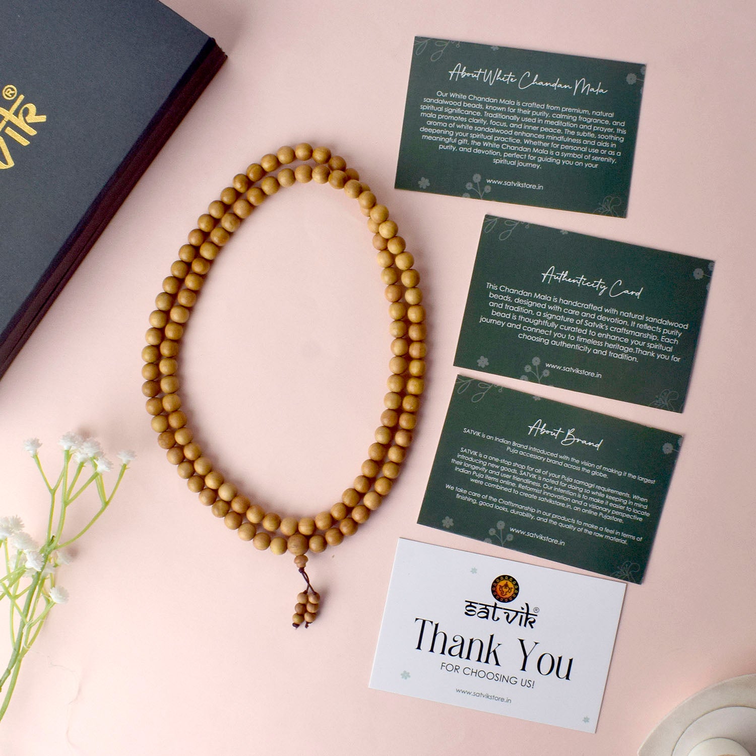 White Sandalwood Jap Mala | Original White Sandalwood Mala | Mala for Vishnu and Lakshmi Jaap | Pure Chandan Mala for Puja | Natural White Sandalwood Prayer Beads |