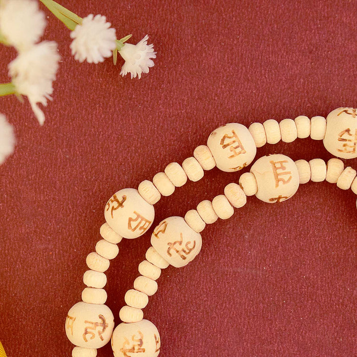 ✨ Benefits of Wooden Mala with Radha Krishna Locket: