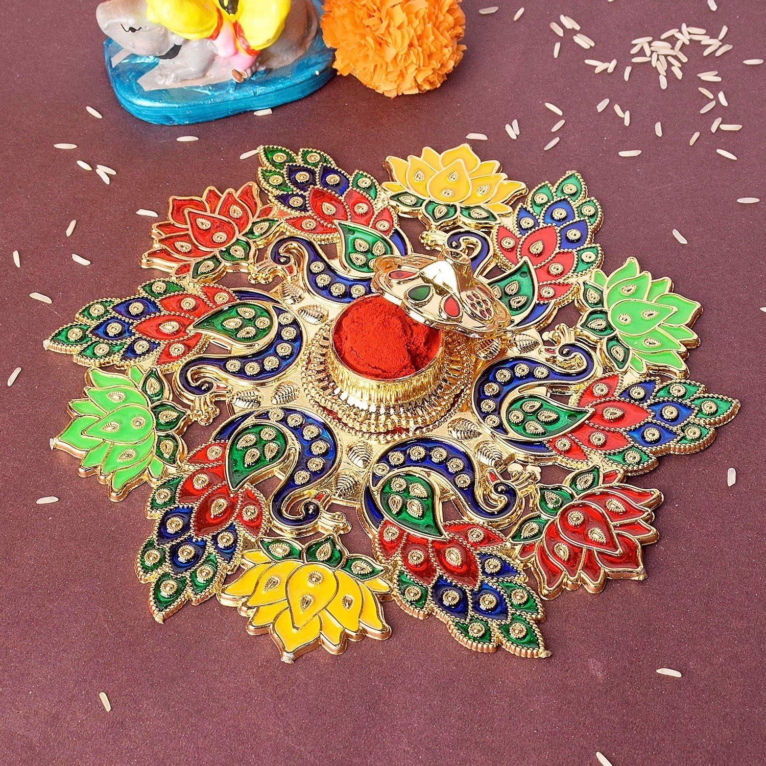 Exquisite Peacock Flower Design Kumkum Container – Satvikworld.com