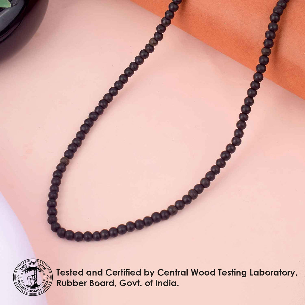 • Material: Mala beads made from tested and certified Ebony wood (Karungali) by the Central Wood Testing Laboratory, Rubber Board, Govt. of India.