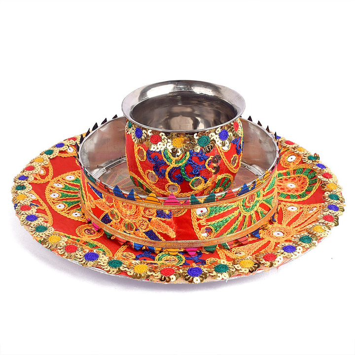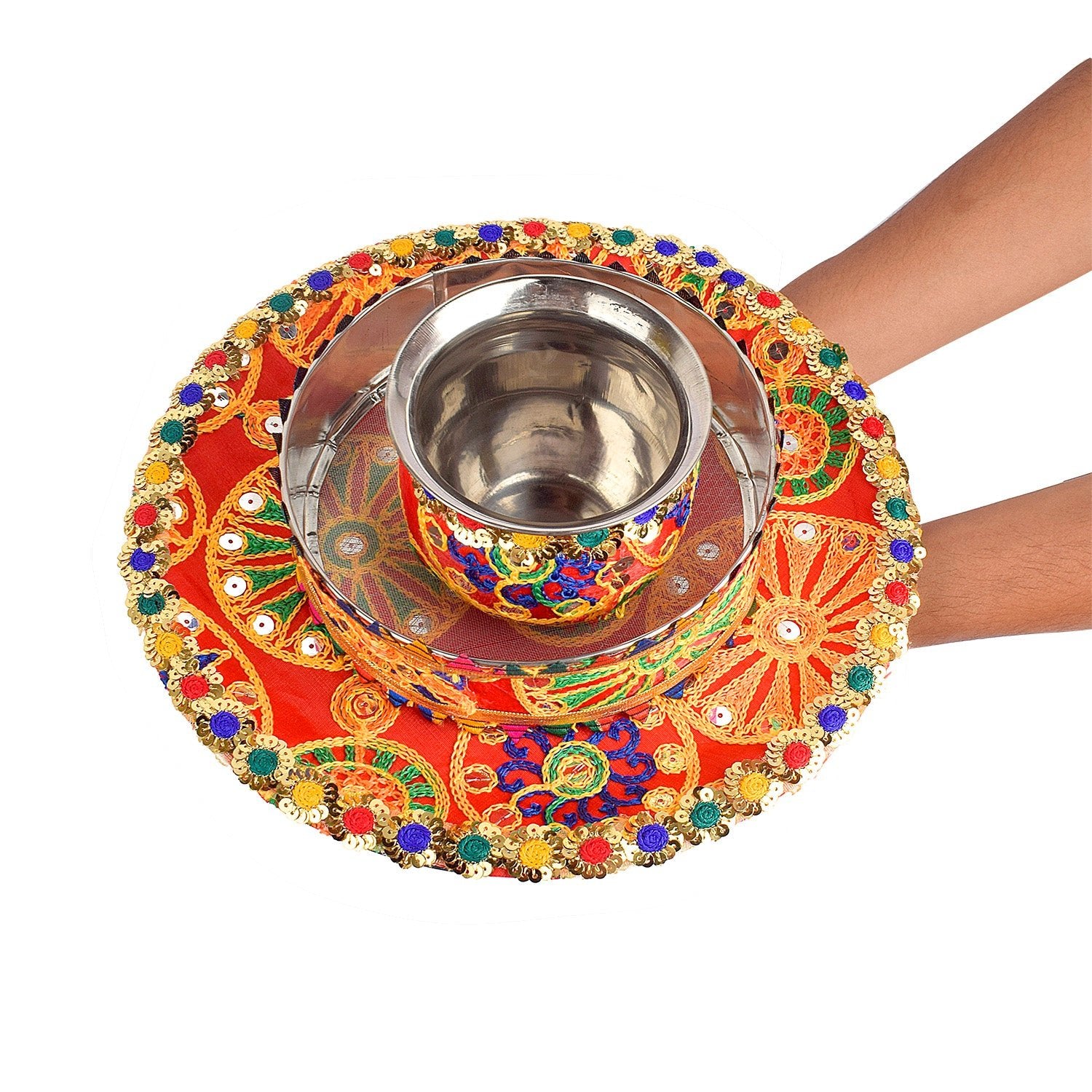 Festive Colorful Karwa Chauth Thali Set - 3pc|Shop at Satvikworld.com